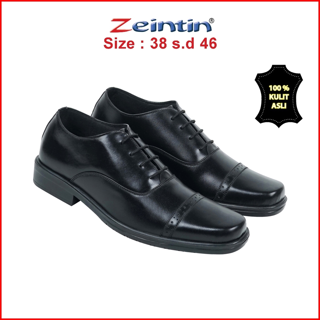 Zeintin - Sepatu Pantofel Pria Sepatu Kantor Kerja Oxford Pria Bahan Kulit Asli Hitam Zeintin Aj
