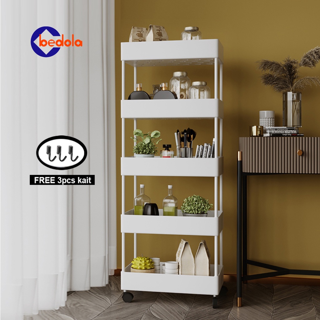 Square rak dapur putih rak kamar mandi rak troli rak susun serbaguna rak dorong 5 tingkat dengan roda