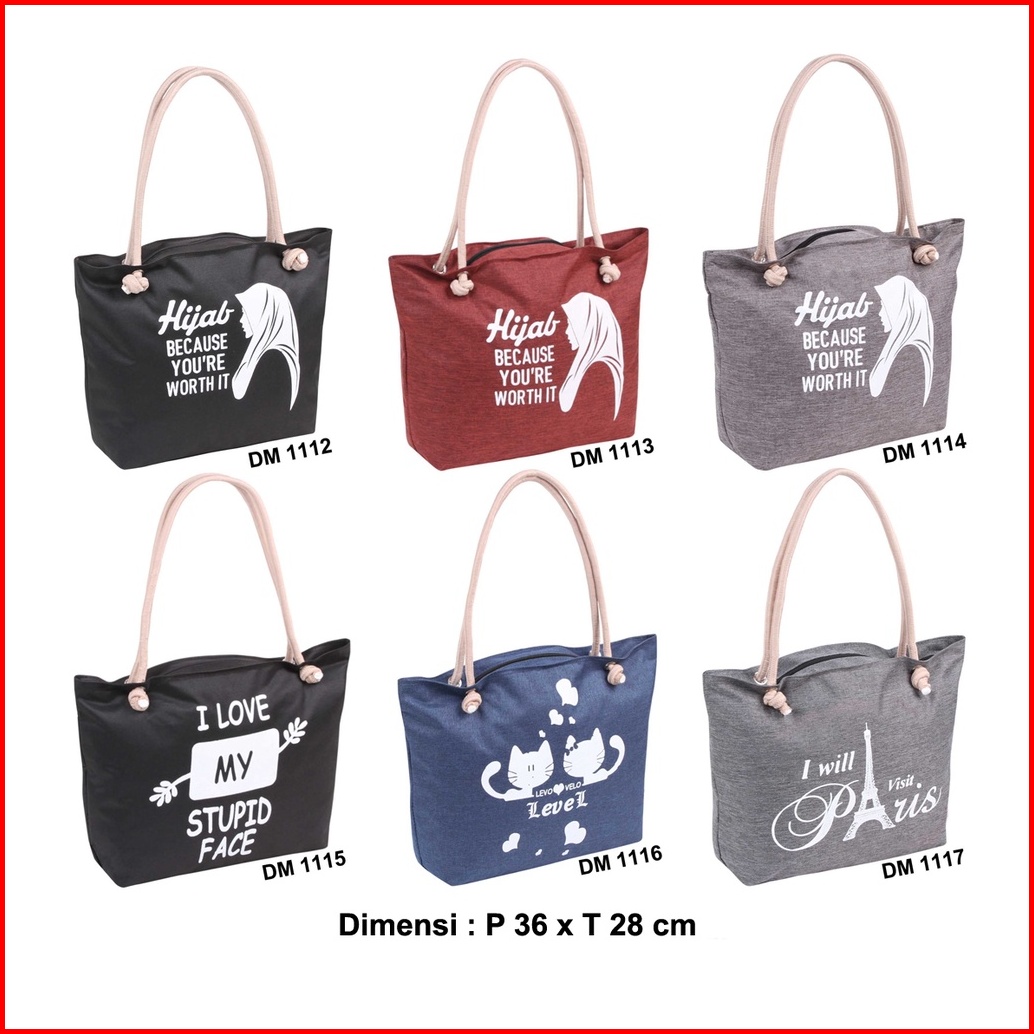 Zeintin - Tas Tote Bag Wanita Resleting Tas Tote Nilon Tali Sumbu Belanja Kuliah Dm