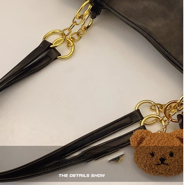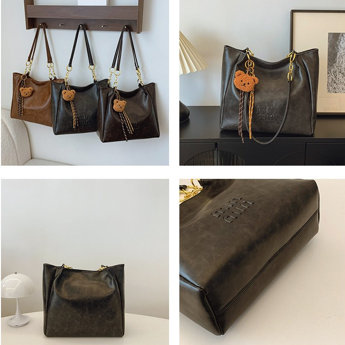 Tas Tote Wanita Besar Elegan PU Leather dengan Hiasan Boneka Ber, Kapasitas Luas 32x12x28cm untuk Kerja & Harian