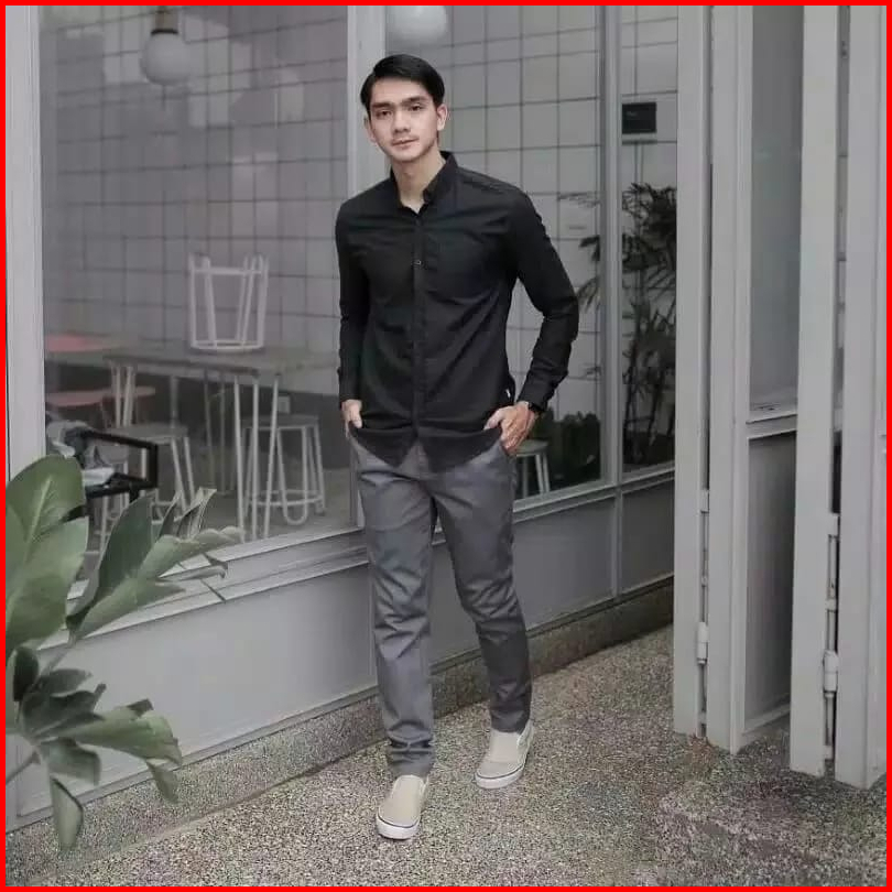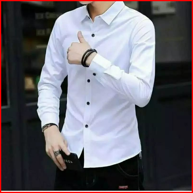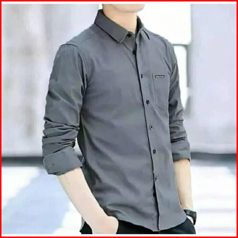 Kemeja Cowok Polos Pria Lengan Panjang Slimfit Hem Pria Kantor Hitam Navy Putih Maron Army