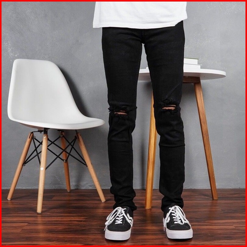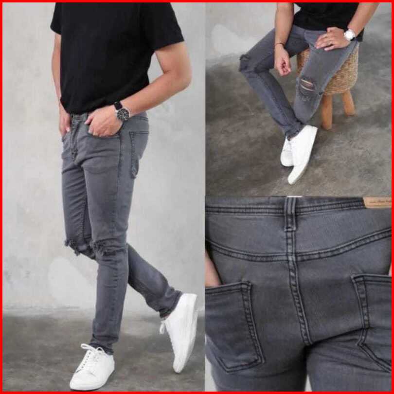 Celana Jeans Sobek Lutut Robek Ripped Hitam Destroy Premium