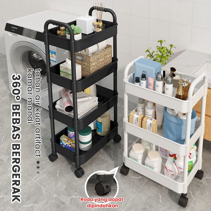 Rak Troli Plastik 4 Tingkat Rak Toilet Rak Kamar Mandi Rak Dapur Serbaguna Dengan Roda Rak Susun