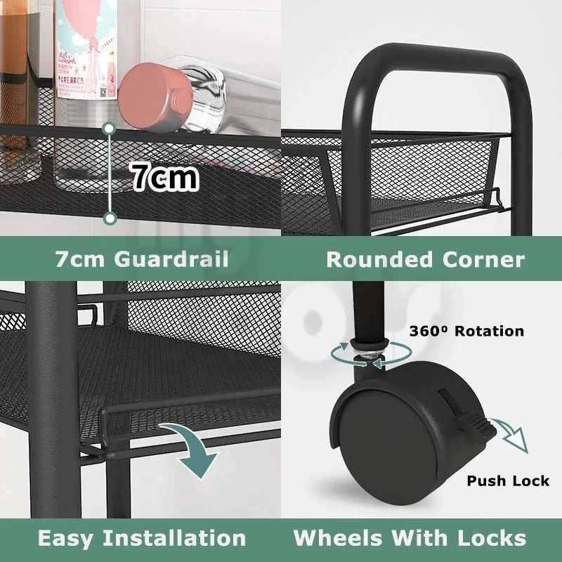 Rak Troli Logam 3/4/5 Susun - Rak Serbaguna Multifungsi untuk Dapur, R Tamu, Kantor | Bisa Dipindah