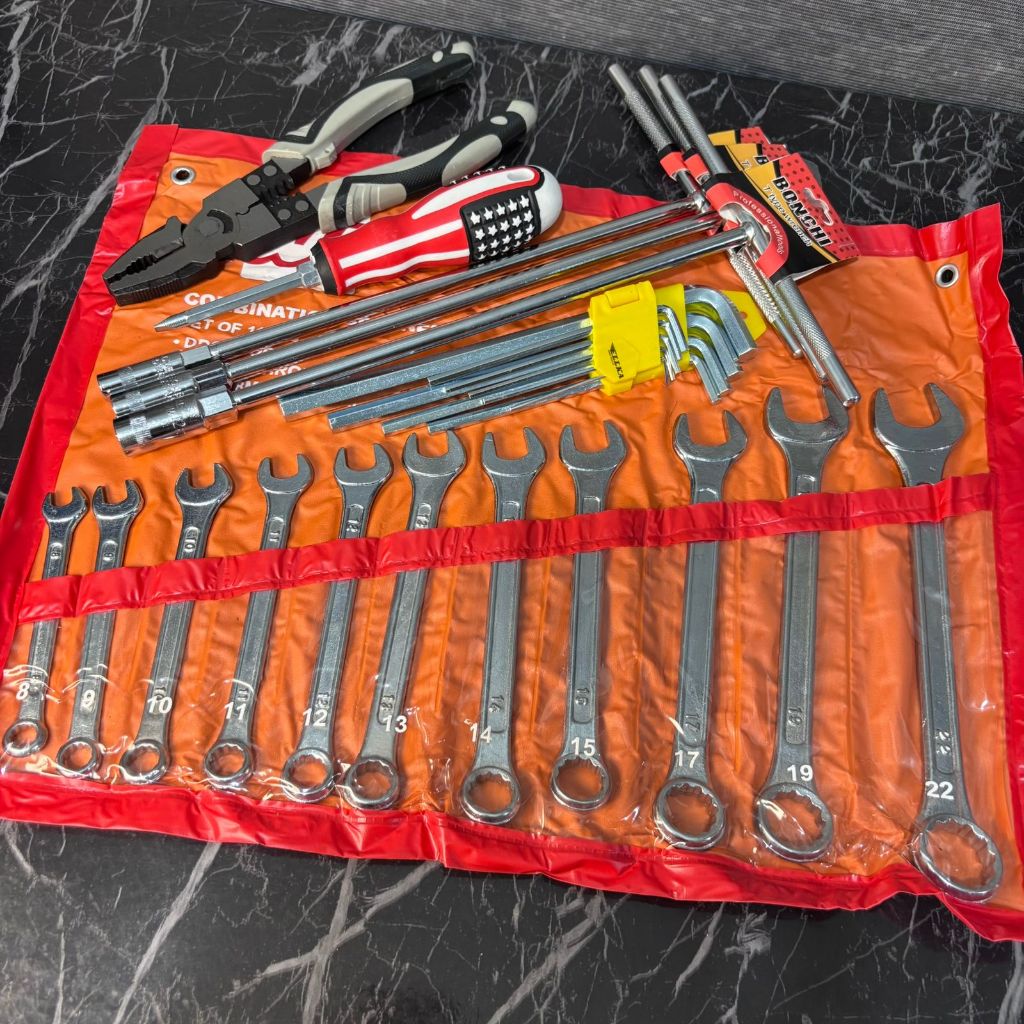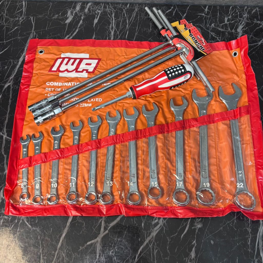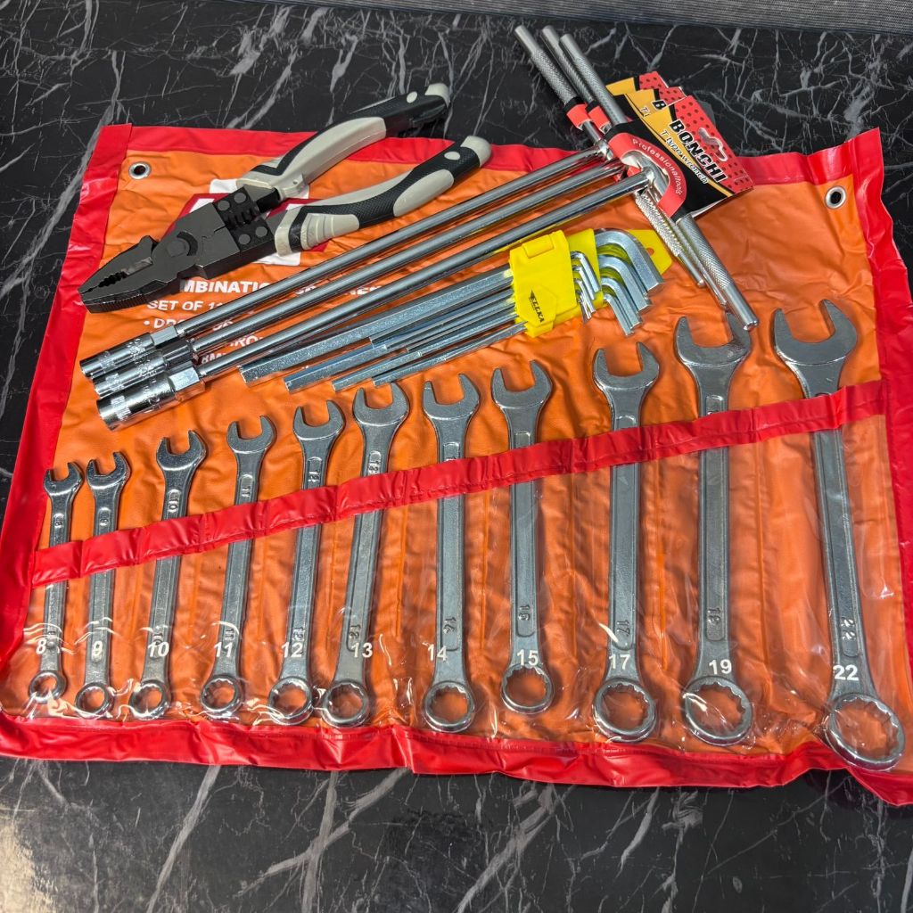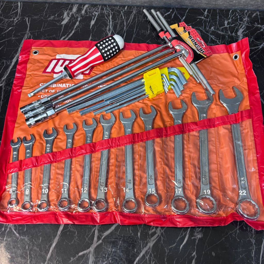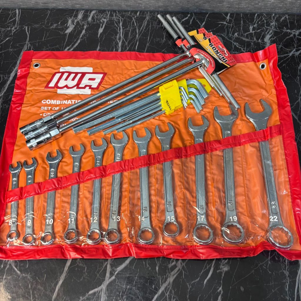 PAKET BENGKEL LENGKAP KUNCI SOCK SET 10 (8-22MM) PCS KUNCI RING PAS SET (8-22MM) KUNCI T SET 3 PCS ( 8-10-12MM) KUNCI L