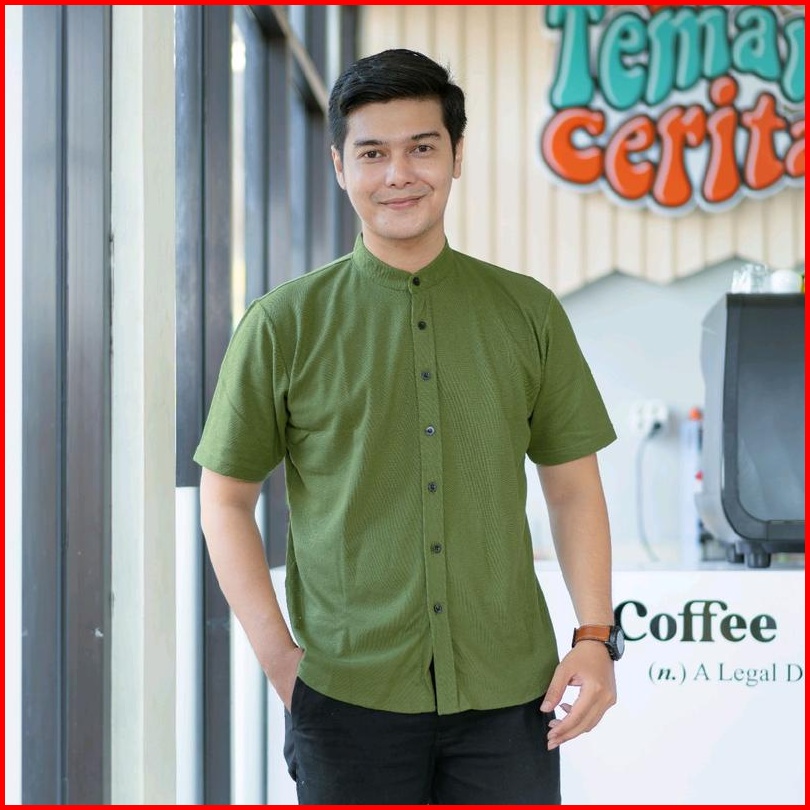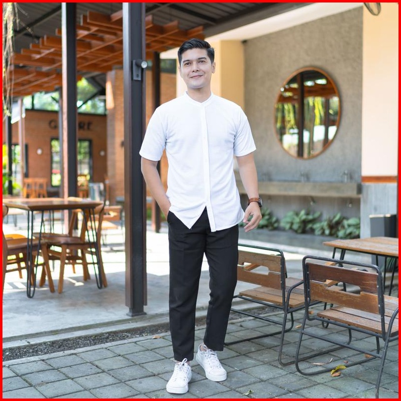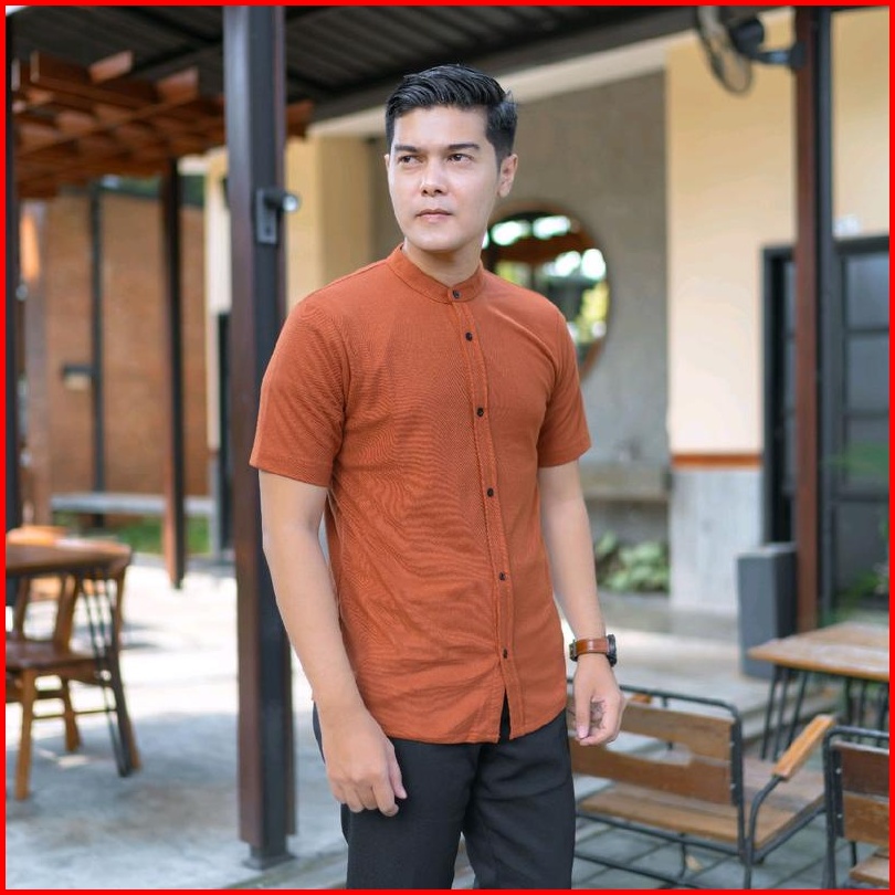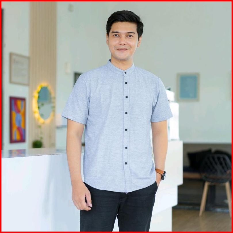Kemeja Pria Lengan Pendek Kerah Sanghai Casual Polos Slimfit Size M - Xxl