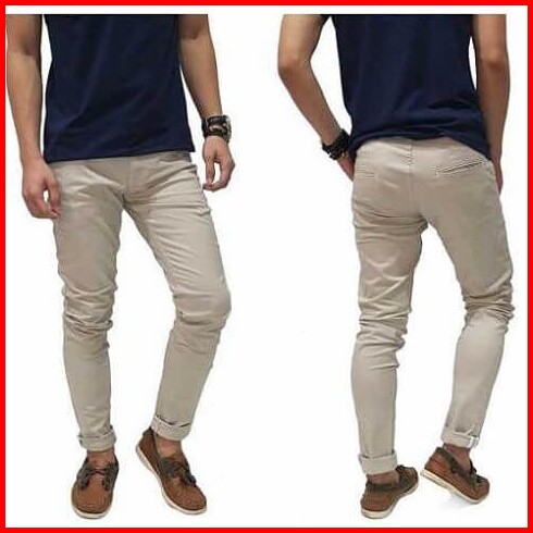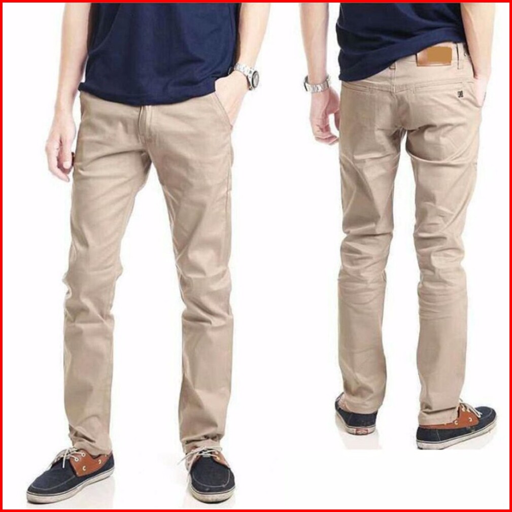 Celana Pria Slimfit Panjang Chino Kerja Harian Hitam Mocca Abu Grey Kream Cream Sz