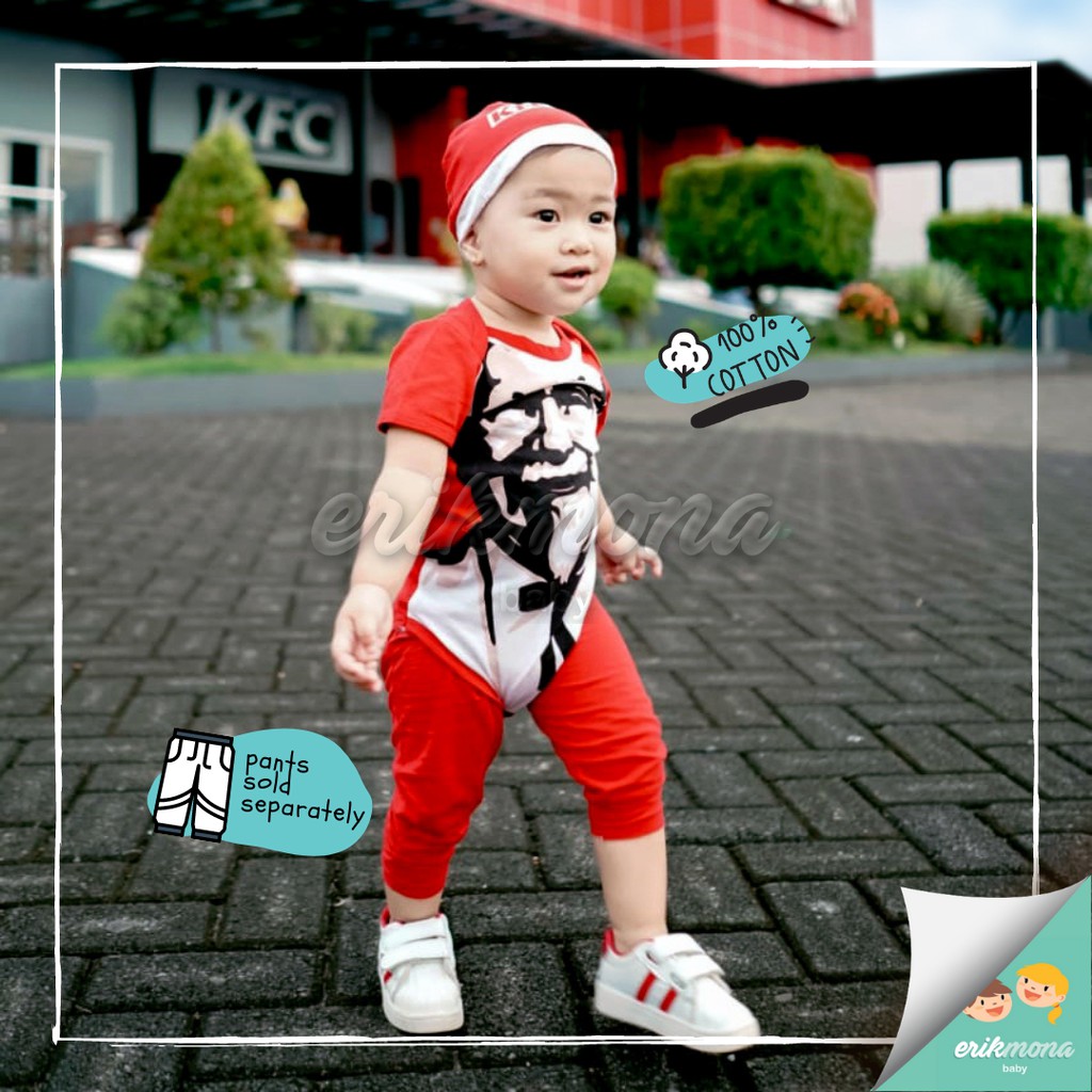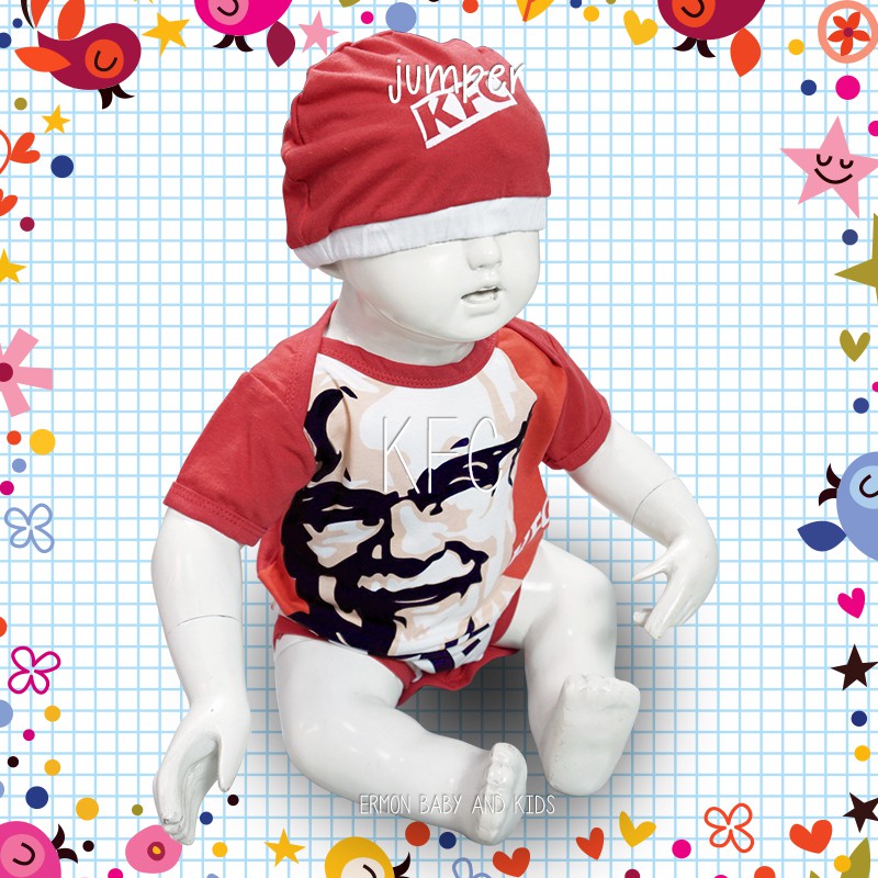 Baju Bayi Laki Laki Jumper Baby Lucu Karakter KFC + Topi usia 0 - 12 Bulan