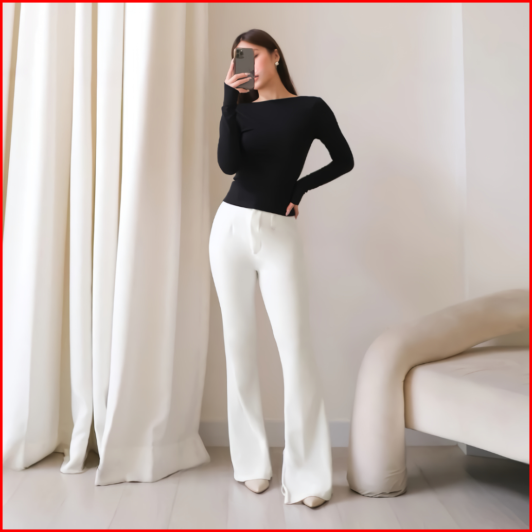 Bella Cutbray Pants - Celana Cutbray Rib Knit Premium - Korean Long Trousers - Loungewear - Celana Highwaist Cutbray Wan