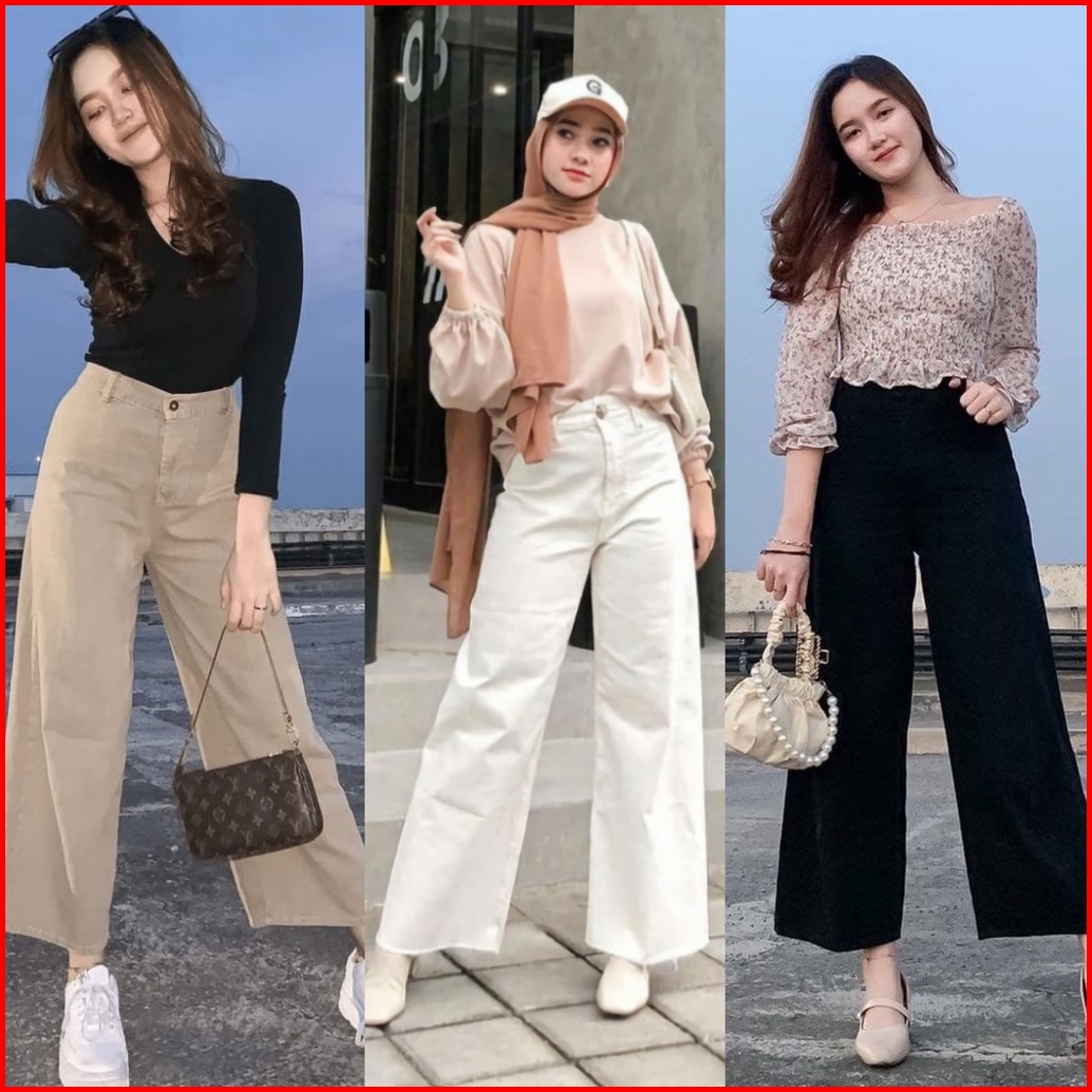 Mozza Cullote Jeans Higwhist - Celana Kulot Delonik Wanita Warna Mocca Snow Terbaru Model Korean