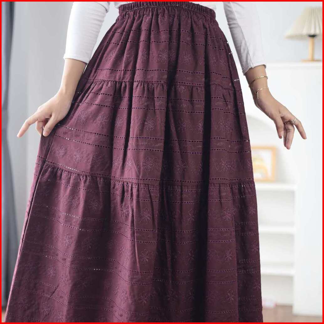 Maudy Skirt Rok Katun Bordir Rok Katbol Rok Panjang Wanita Rok Susun Wanita Rok Korean Style