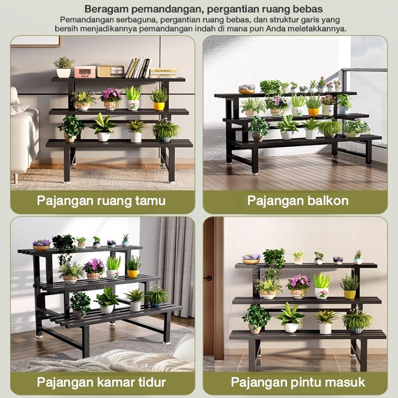Baja Karbon Rak Tanaman 2/3 Susun Rak Bunga Serbaguna Rak Pot Bunga Rak Standing Pot Susun