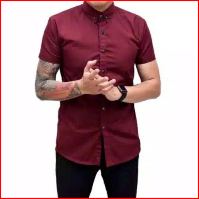 Kemeja Pria Boyi Top Man Lengan Pendek Kasual Formal Kerja Putih Hitam Navy Grey Warna White