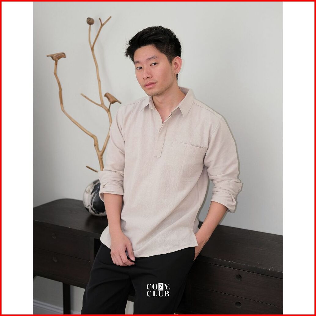 Cozyclub Linen Longsleeve Polo Kaos Kerah Pria Linen Lengan Panjang 191