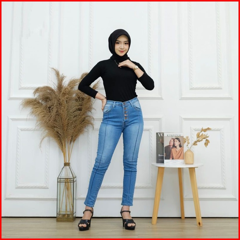 Celana Jeans Haigh Waist Hw Lipat Tulang Tengah 27-34