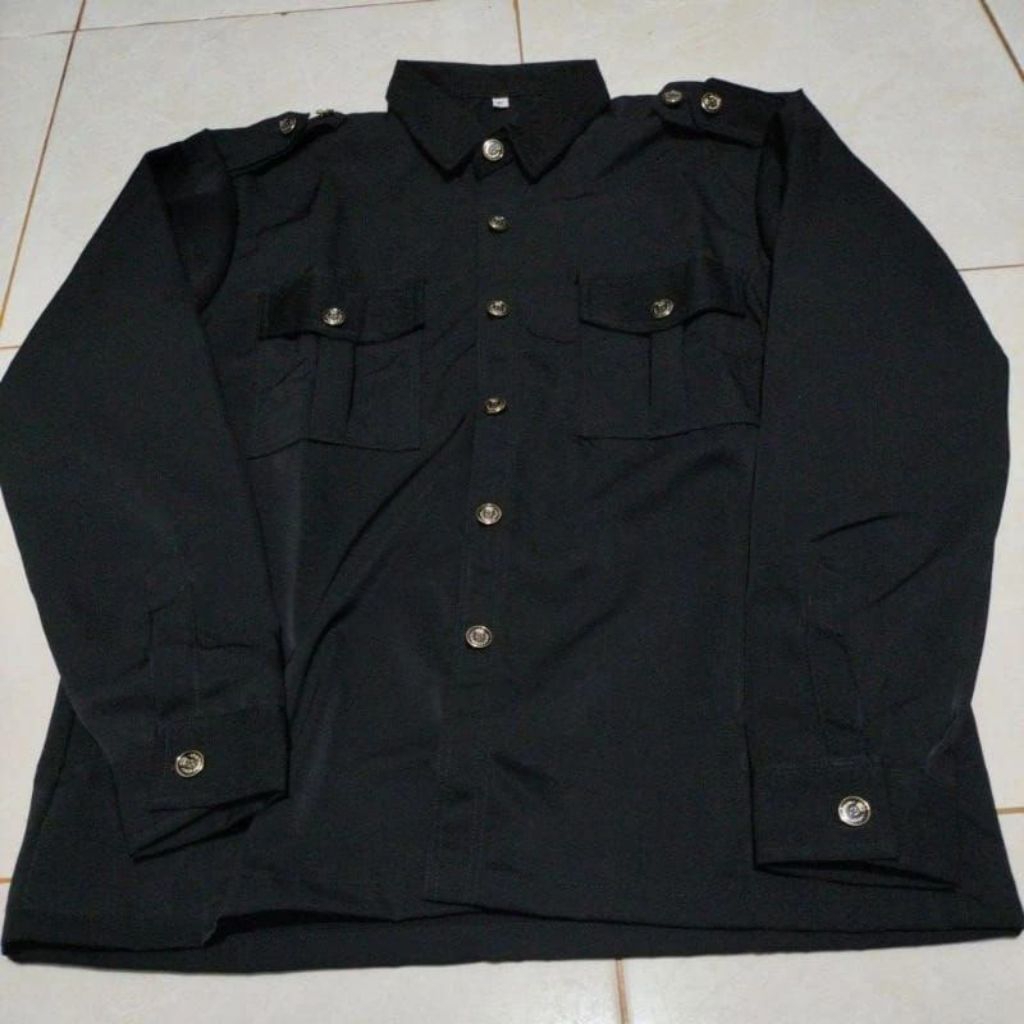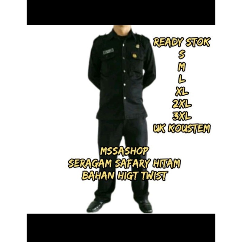 1 stel baju safari security seragam safari hitam terbaru sragam satpam sopir driver warna hitam bahan lembut twist