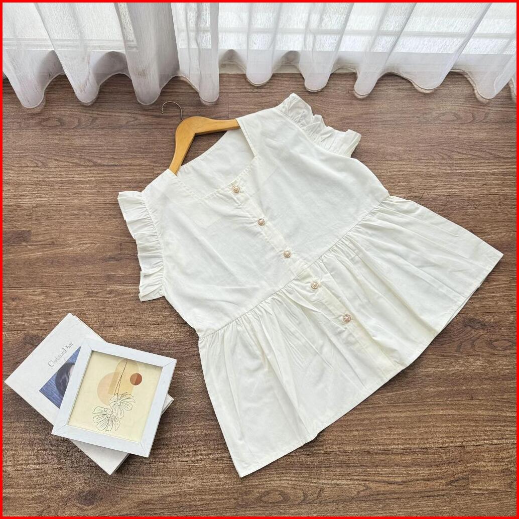 Candy Vest Ruffle Vest Katun Poplin Vest Wanita Kancing