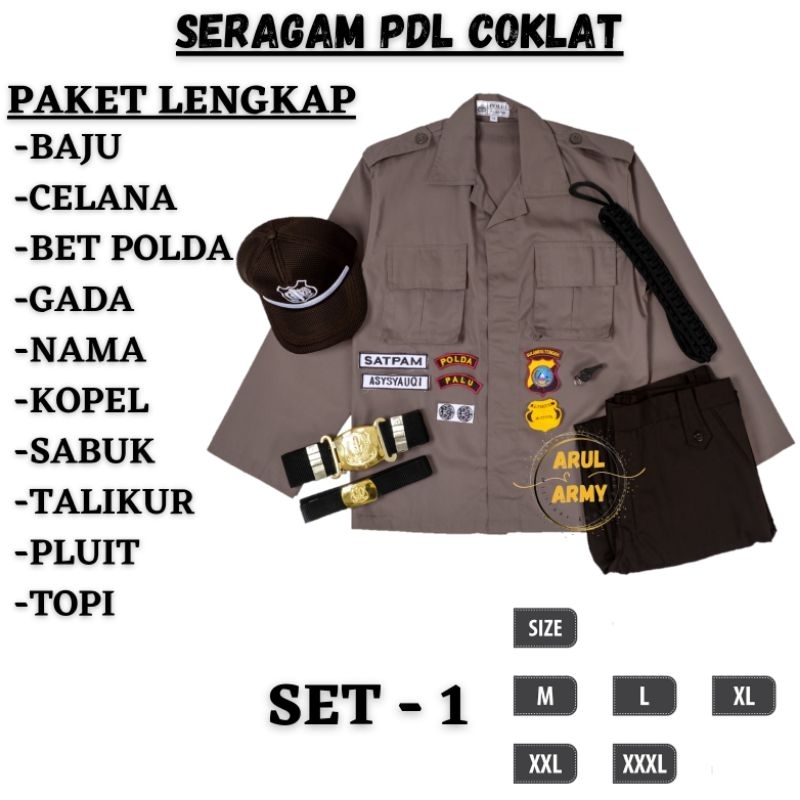 Baju Seragam Setelan Satpam Security PDH PDL Coklat Terbaru Krem Paket Lengkap Seragam Satpam