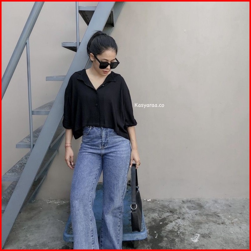 Kemeja Wanita Crop Top Ghea Rayon Premium Kemeja Remaja Hits