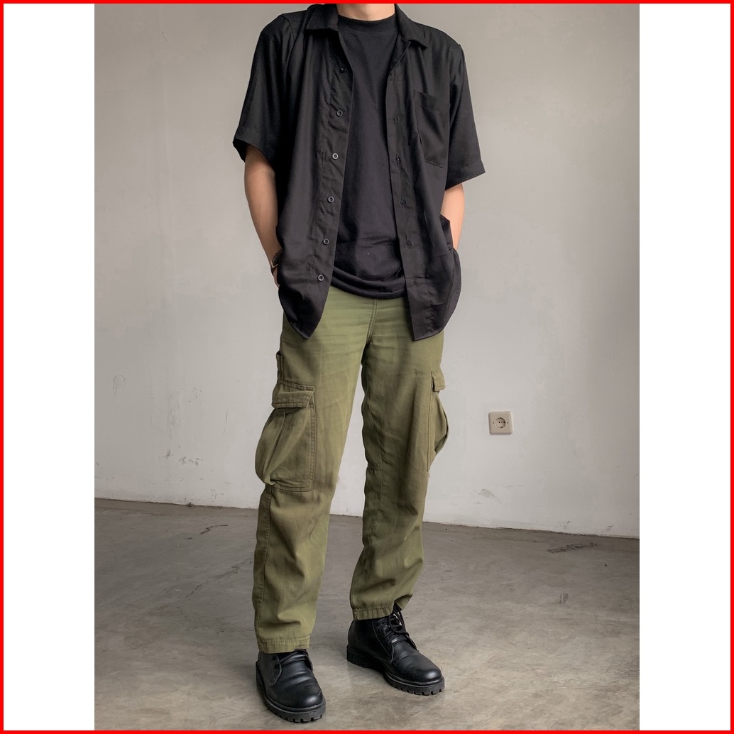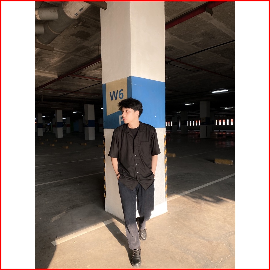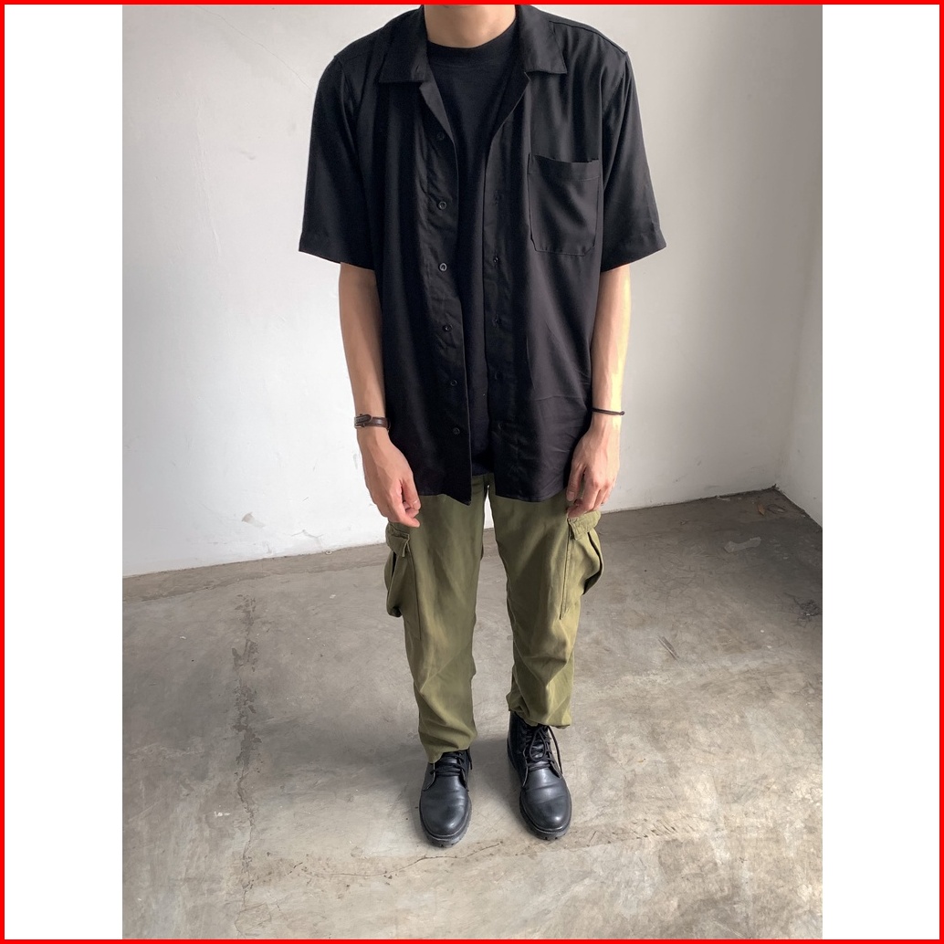 Wilmerstudios Kemeja Rayon Pria Hawai Lengan Pendek Hitam