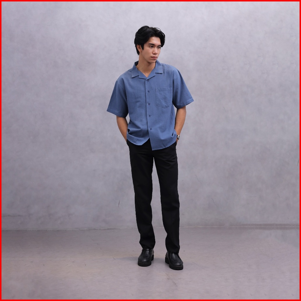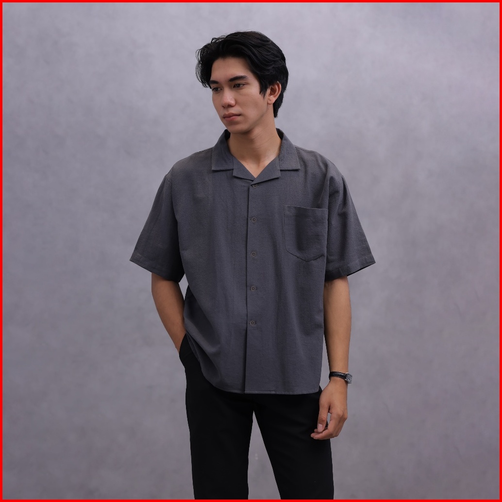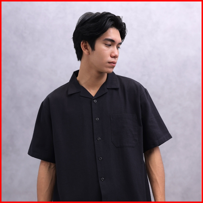 Wilmerstudios Kemeja Linen Oversize Pria Open Collar Lengan Pendek All Variant