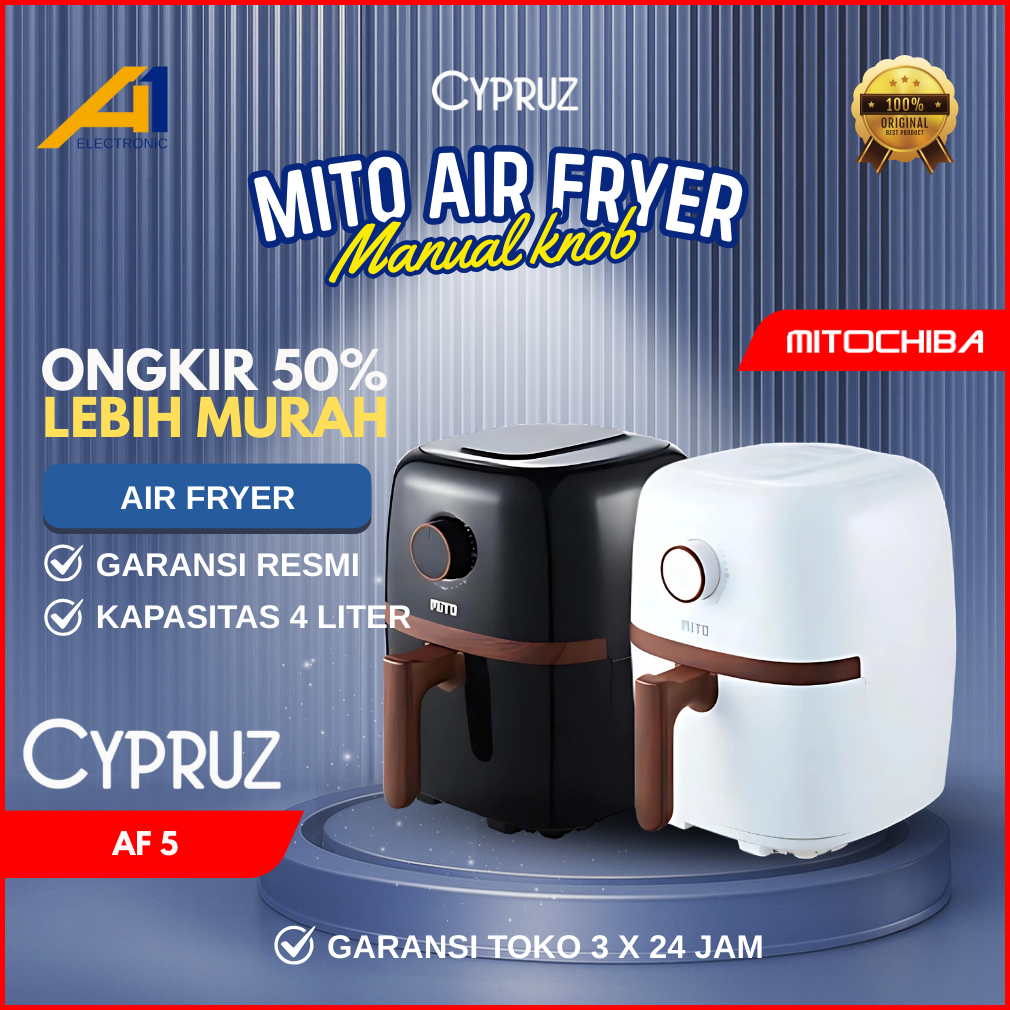 Mito Air Fryer Af5 4 Liter 800w Low Watt Happy Fry Series Manual Knob Garansi Resmi 1 Tahun
