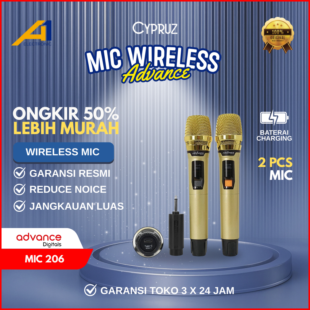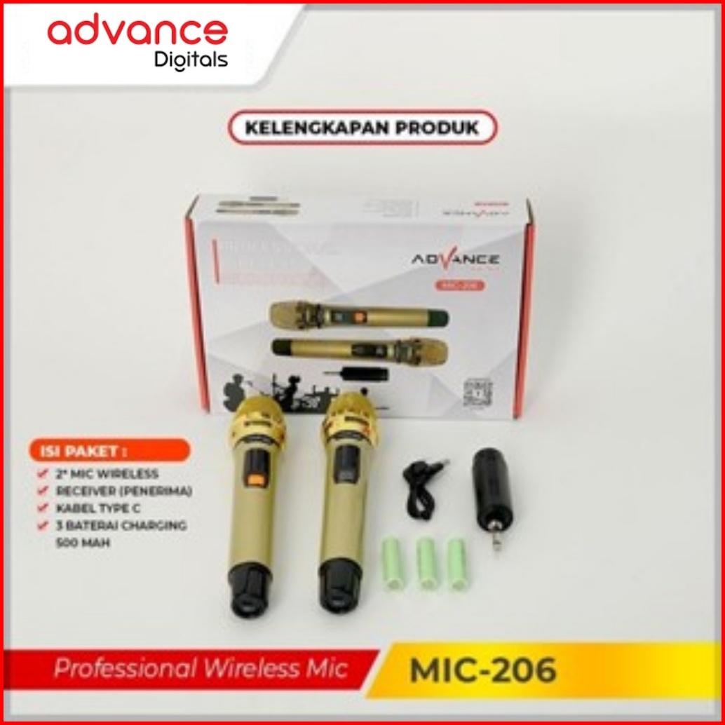 Advance Mic Wireless Mic 206 Mic206 Bluetooth Karaoke Double Wireless Microphone Suara Jernih