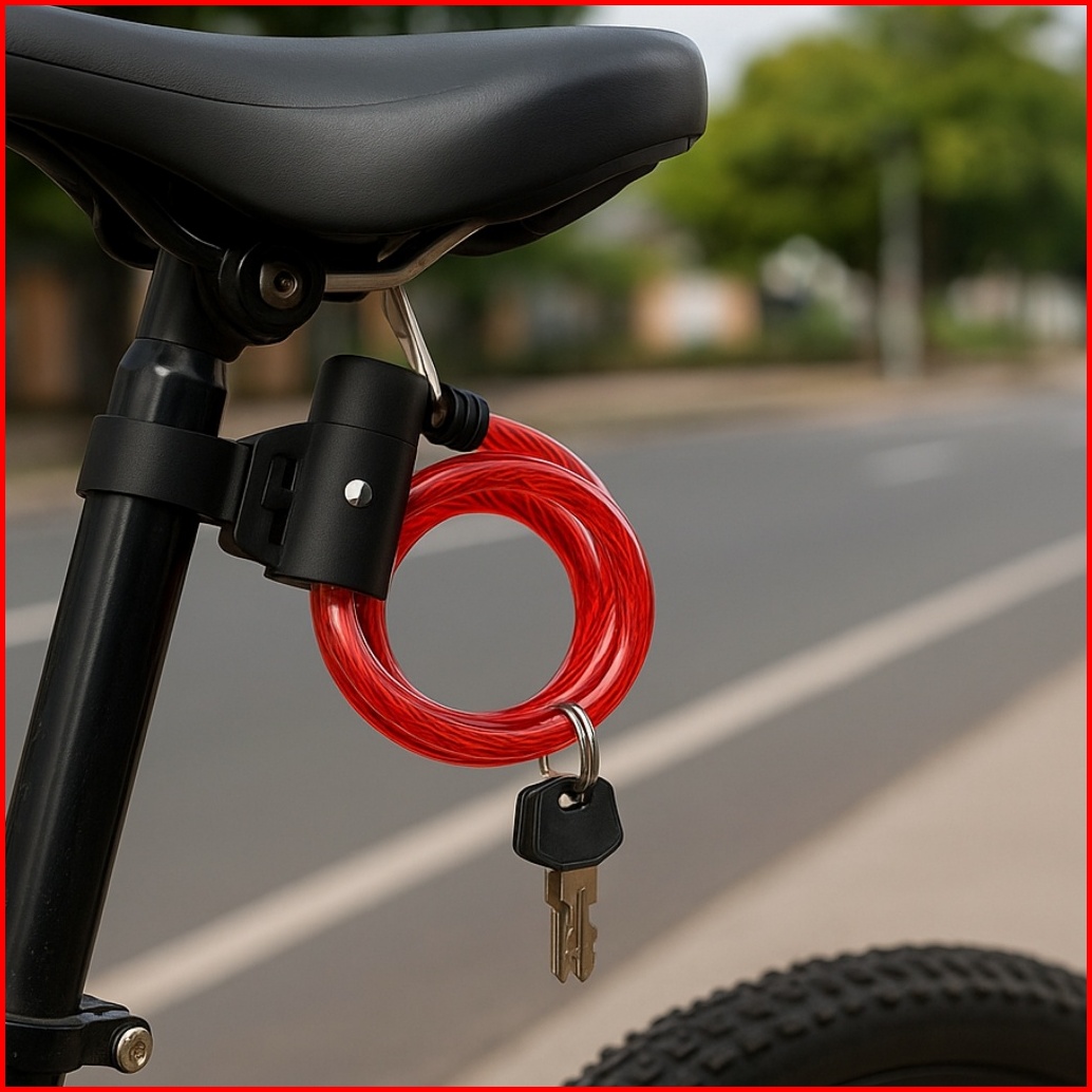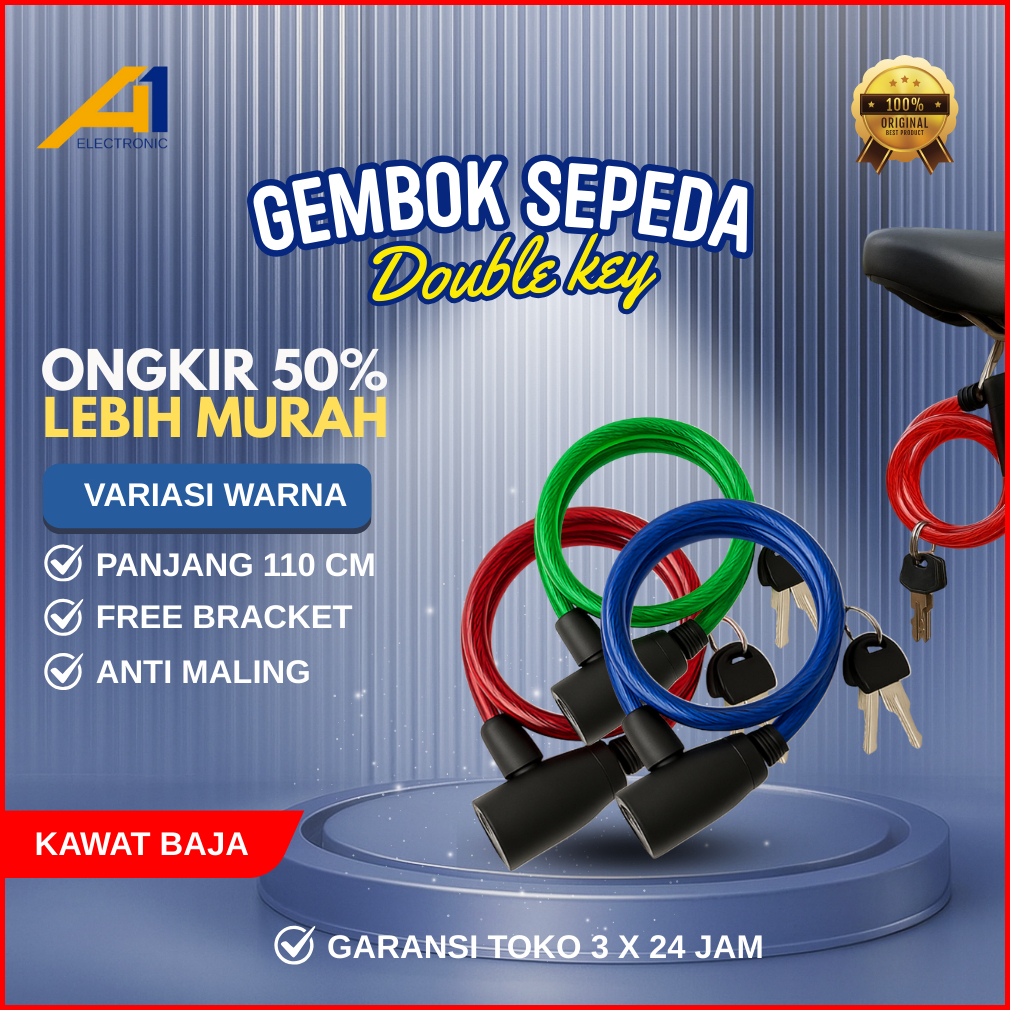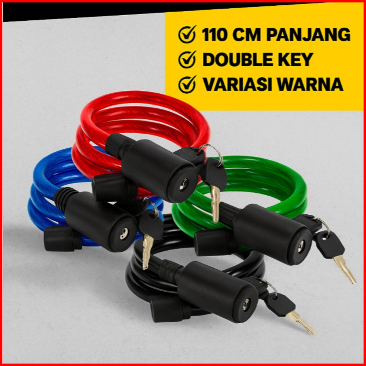 Gembok Sepeda Kawat Baja Double Key With Bracket Kuat Anti Maling Kuat Barang Cuci Gudang