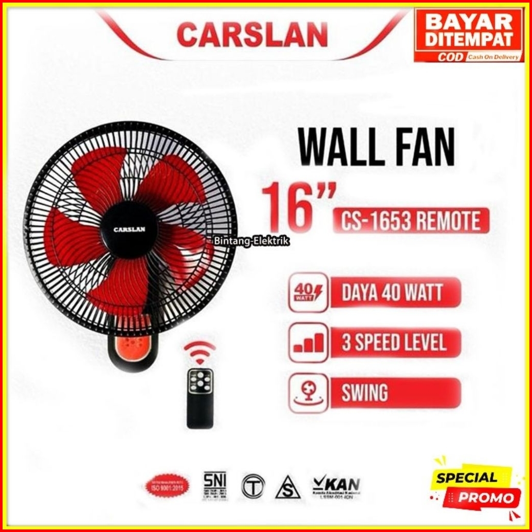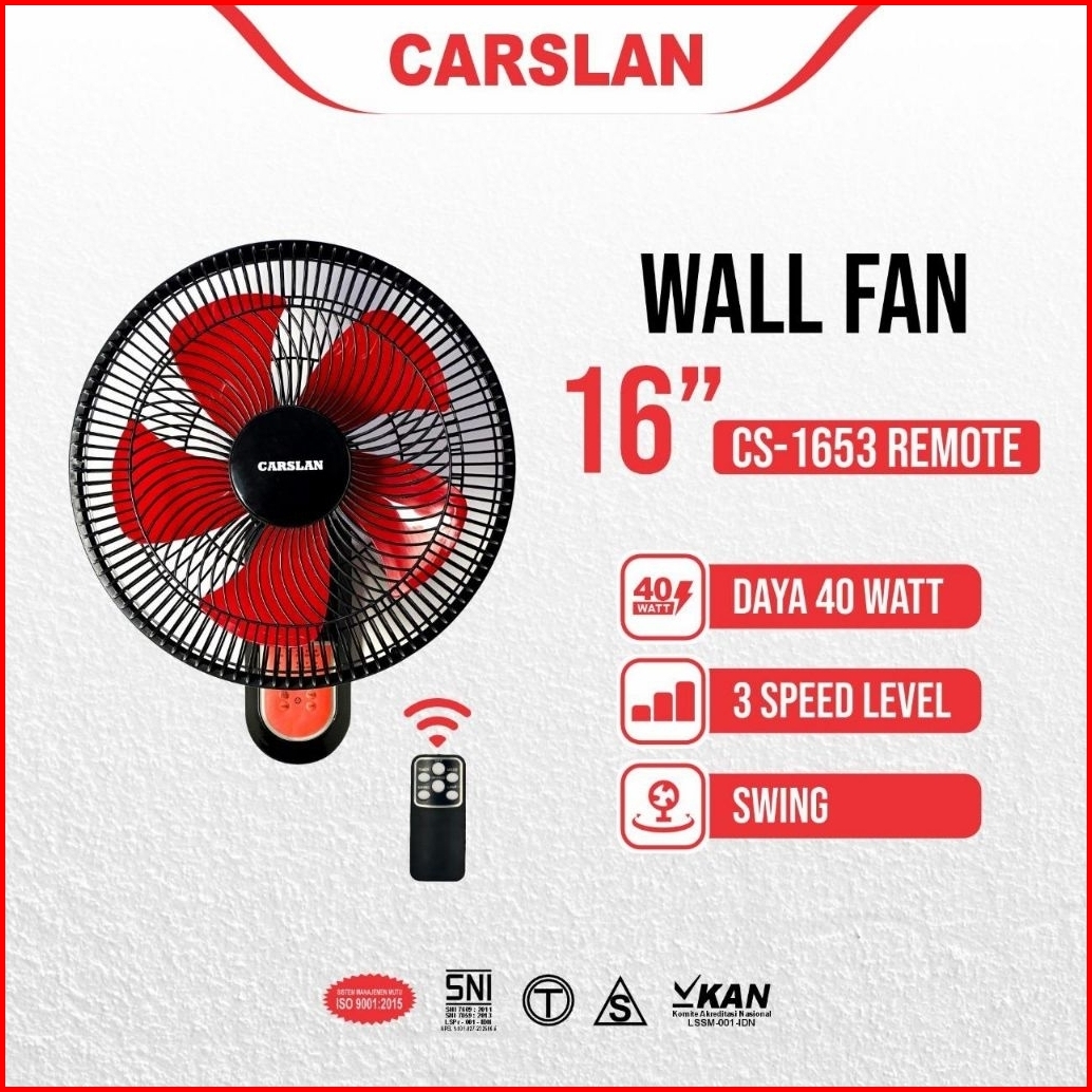 Kipas Angin Dinding Remot Carslan 16inch Cs-1653 Remot Wall Fan Carslan Remot 16inch Cs-1653 Remot