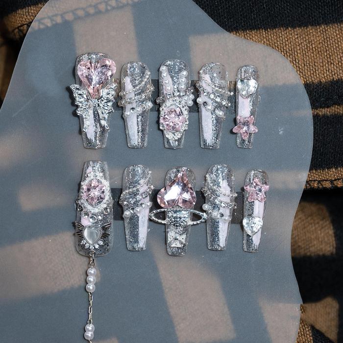 2 210 FEK NAILS PREMIUM HANDMADE NAIL STICKERSKUKU FALES NAIL ART FEK NAILS NAIL ART SET LENGKAP PRESS ON NAILS PINK KUK