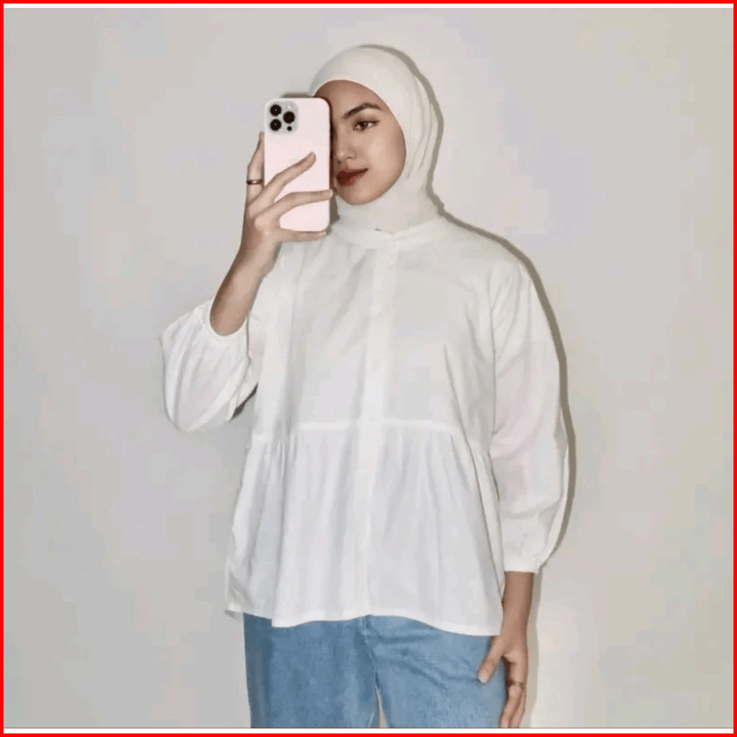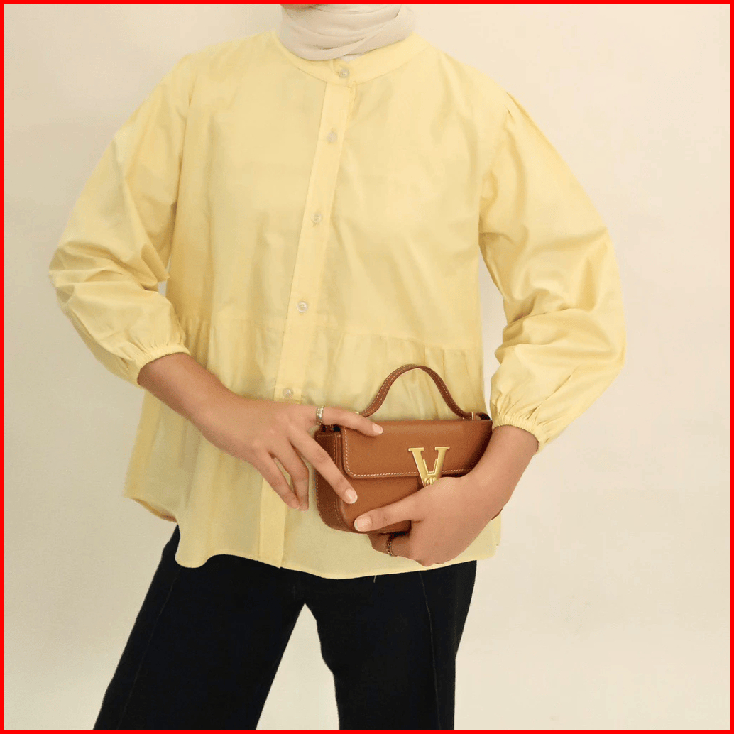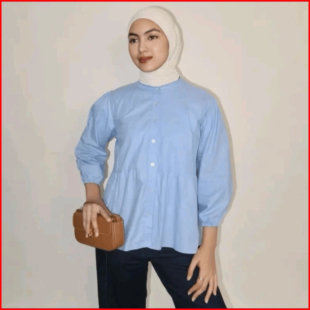 Kyren Blouse Ruffle Katun Linen Wanita Semi Crop Lengan 3 4 Atasan Casual Korean Style