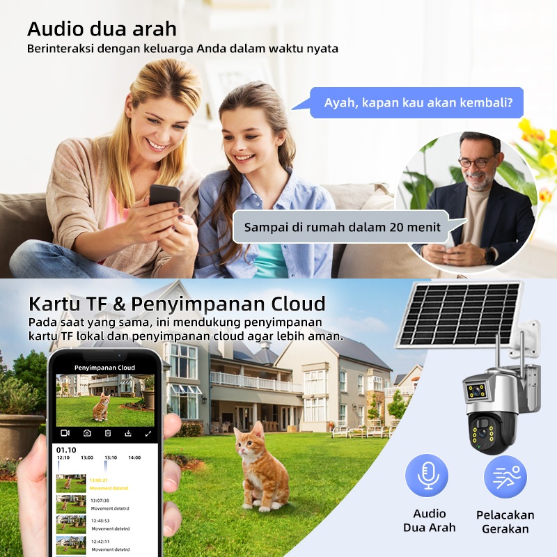 Franwell 4G Solar CCTV Dual Lens Outdoor Gratis SIM Tanpa WiFi Night Vision Audio 2 Arah Tahan Hujan