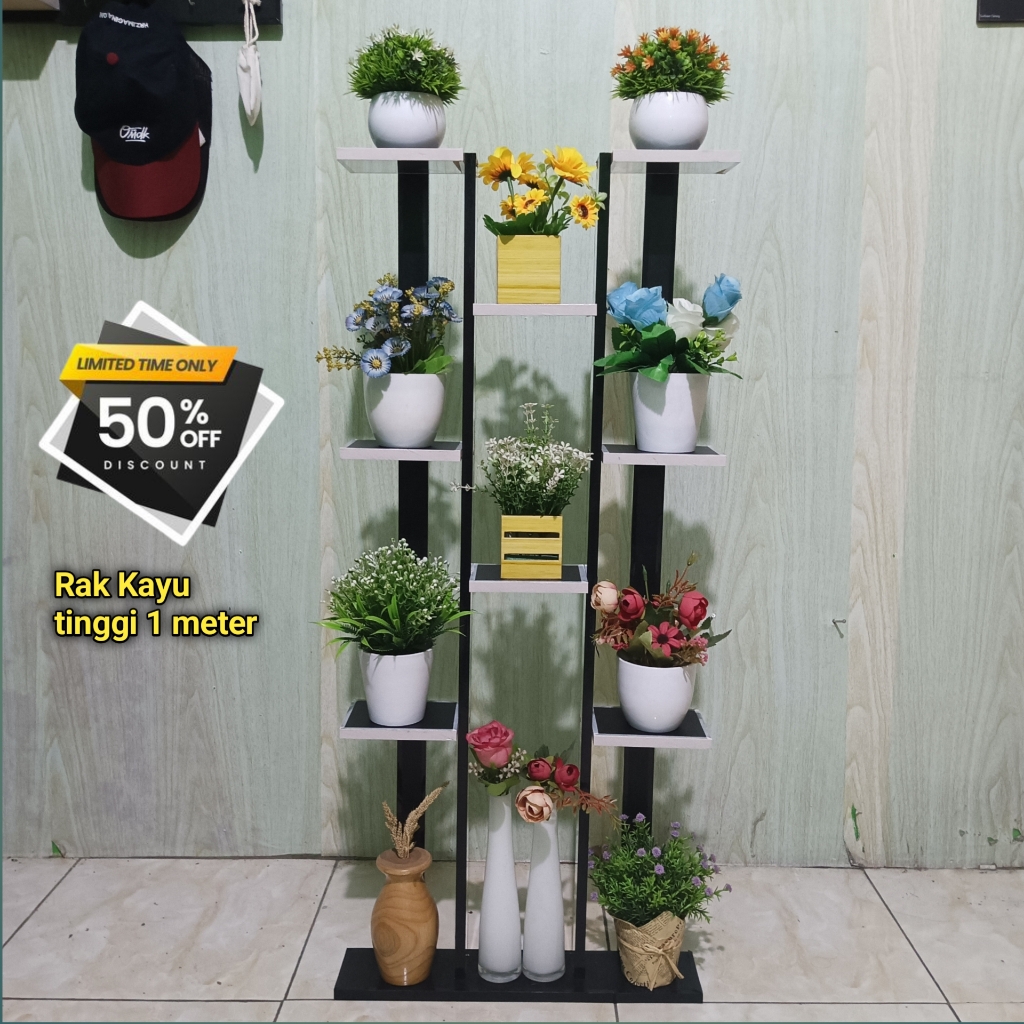 Rak Bunga Bahan Kayu Tinggi 1 Meter Hiasan Dekorasi Rumah Serbaguna / Rak Bunga Hiasan R Tamu