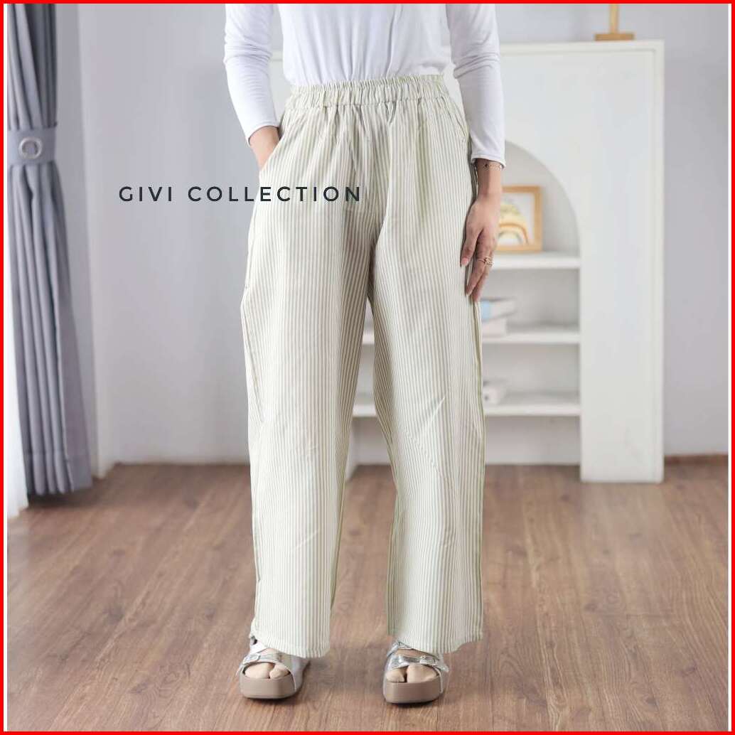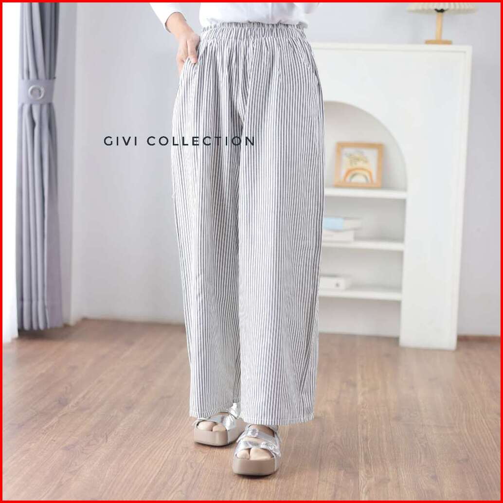 Rumi Pants Stripe Pants Wanita Celana Wanita Salur Celana Highwaist