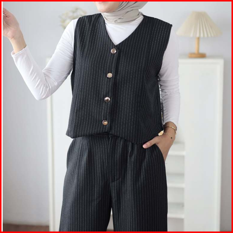 Viola Set Vest Vest Casual Top Highwaist Pants Culotte Set Vest Wanita