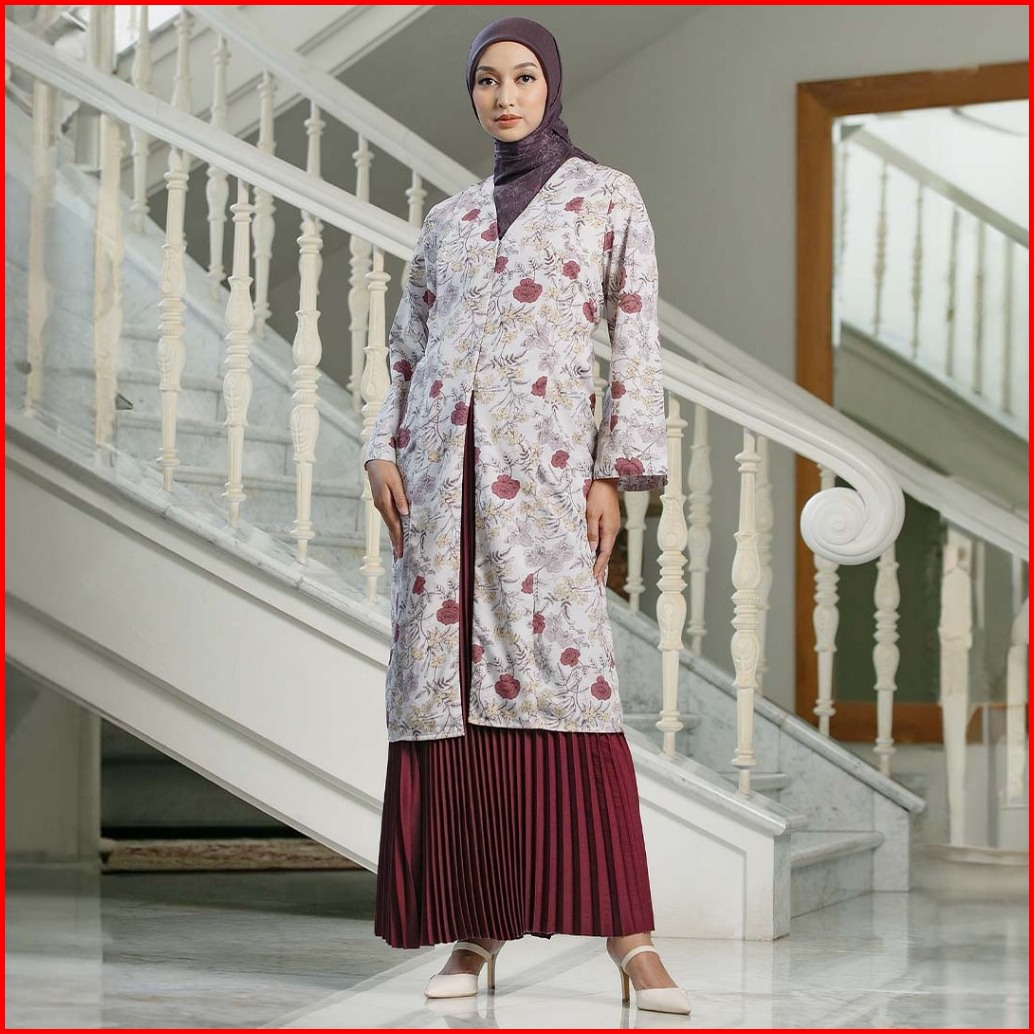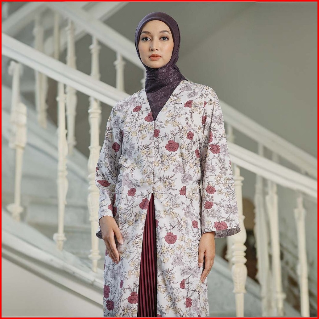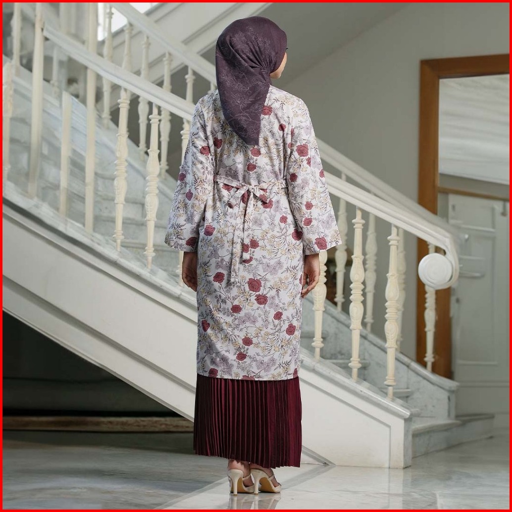 Hijabchic Jelita Red Tunic - Tunik Katun Motif Bunga Tali Samping Slimfit Elegan