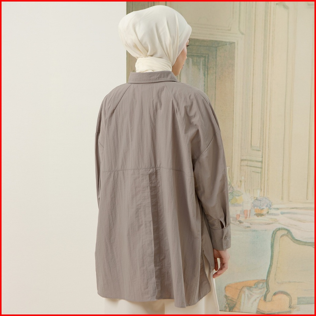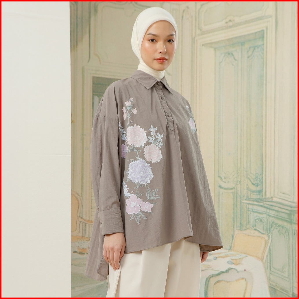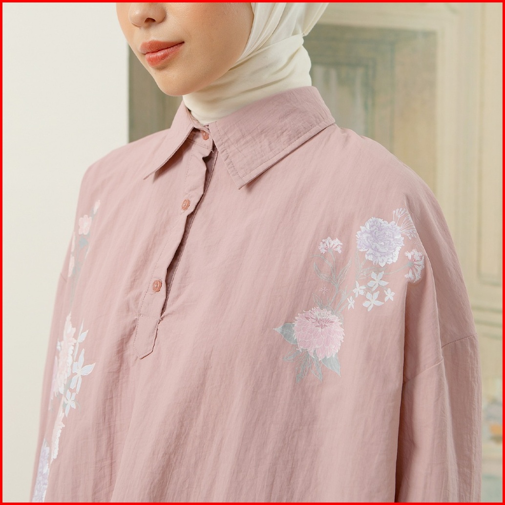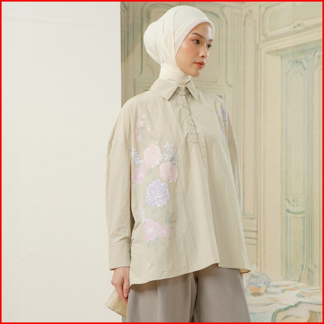 Hijabchic Alera Top - Kemeja Polos Kombinasi Motif Bunga Cantik Bahan Parasut Premium Lembut