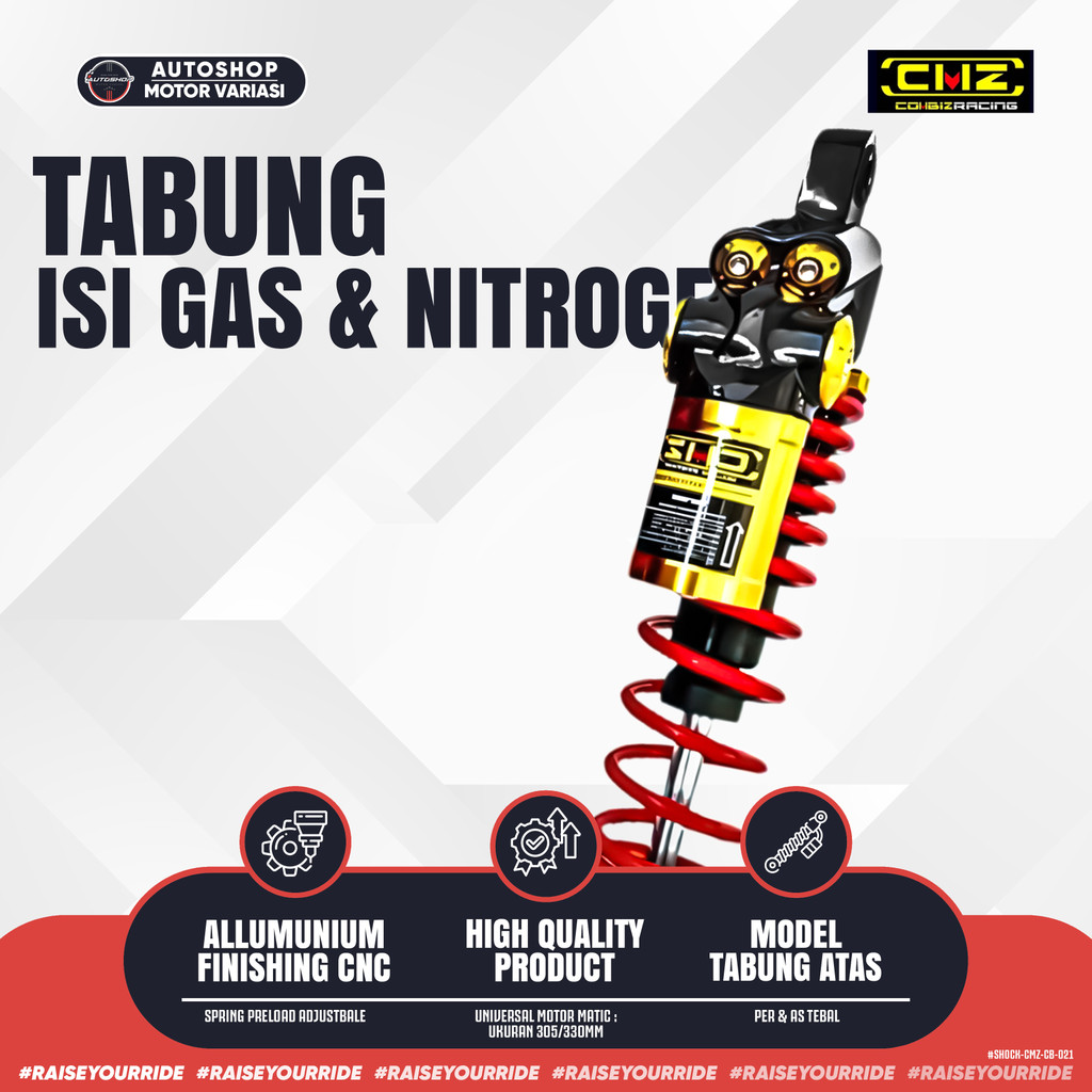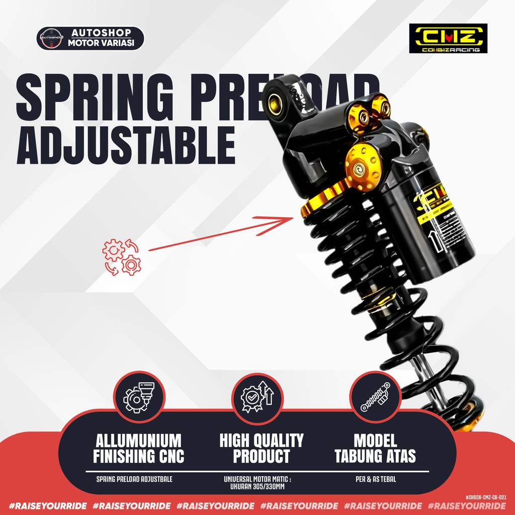 Shock Breaker 305MM VARIO 125/150, MIO, BEAT, X-RIDE, FINO, VESPA MATIC SPRINT Skok Shock Belakang Tabung Atas Adjustable Pir Spring Universal Matic