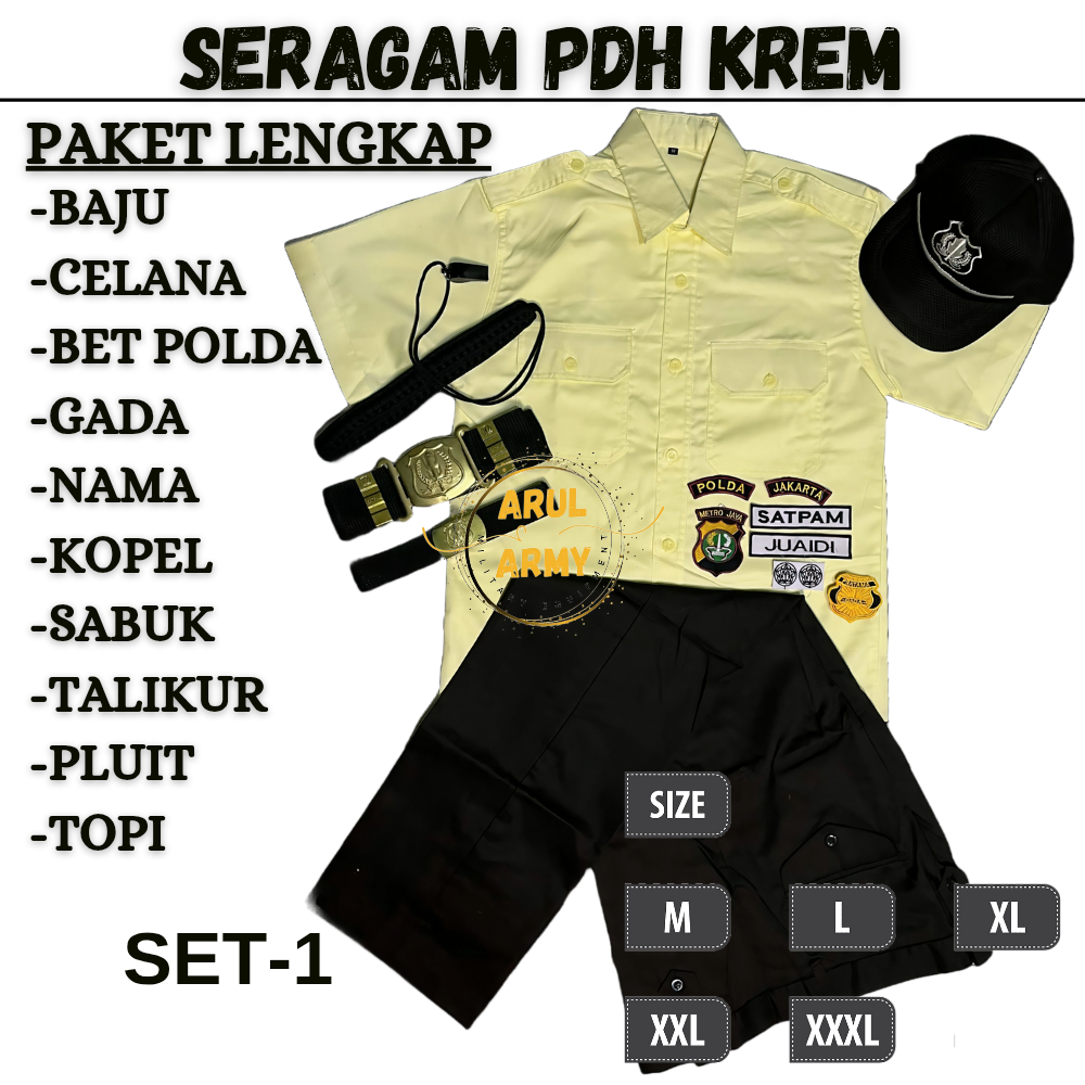 PAKET LENGKAP BAJU SERAGAM SATPAM SECURITY PDH SUS LENGAN PANJANG KREM UNISEX SETELAN PDL PDH SECWAN