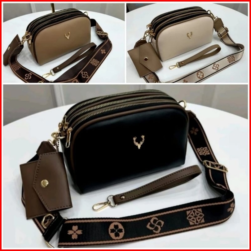 Tas Selempang Wanita 3 Ruang Naura Bag Resleting Fashion Korean