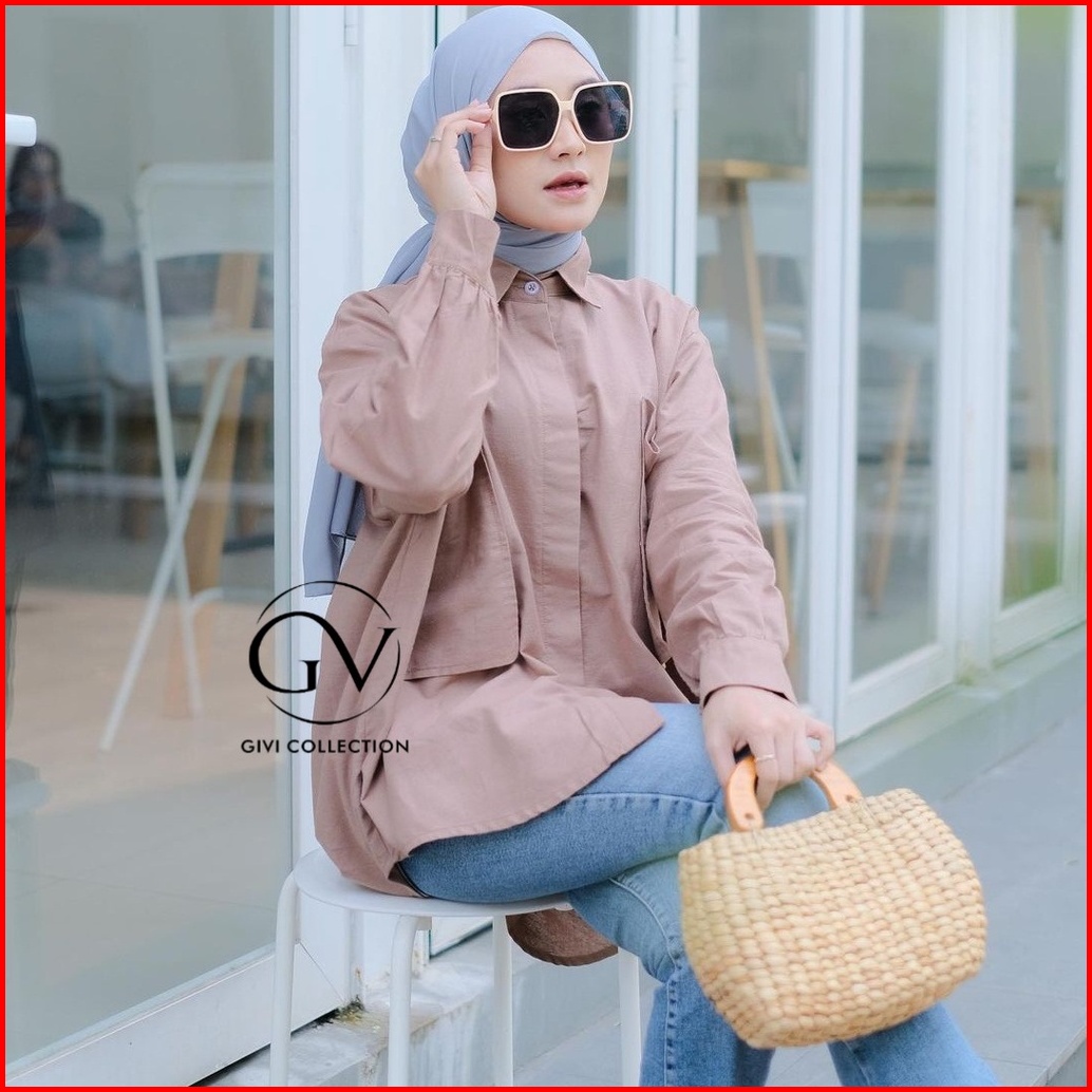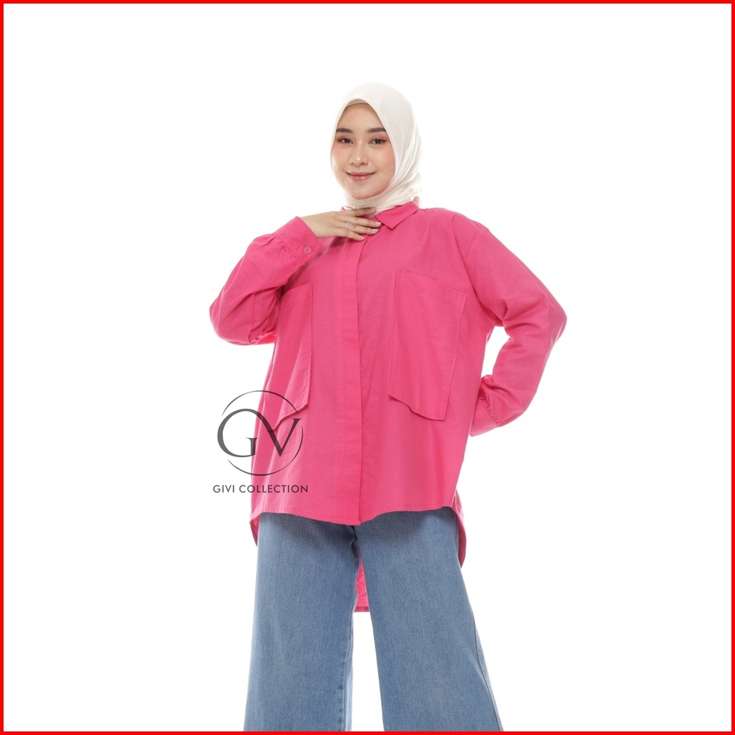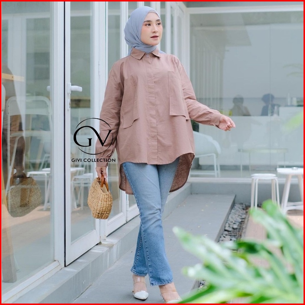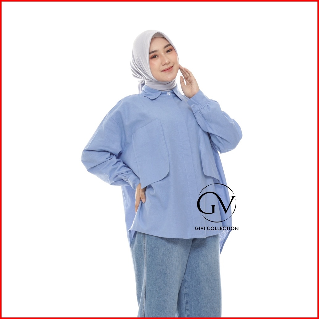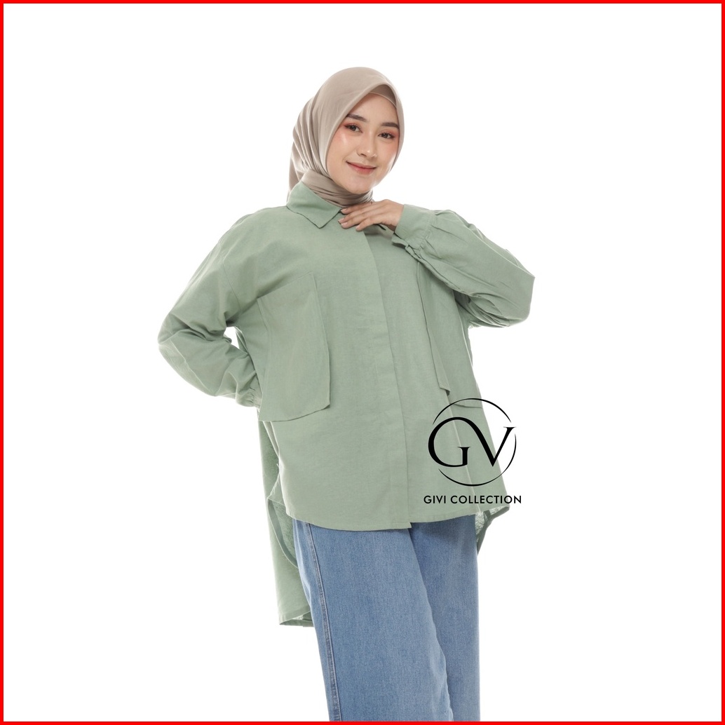 Lydia Blouse Kemeja Wanita Oversize Linen Rami Shirt Wanita Oversize Atasan Wanita Terbaru Kemeja Pocket