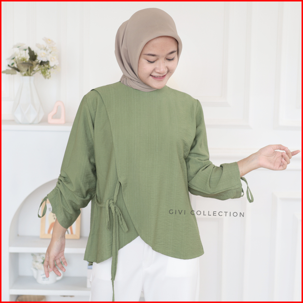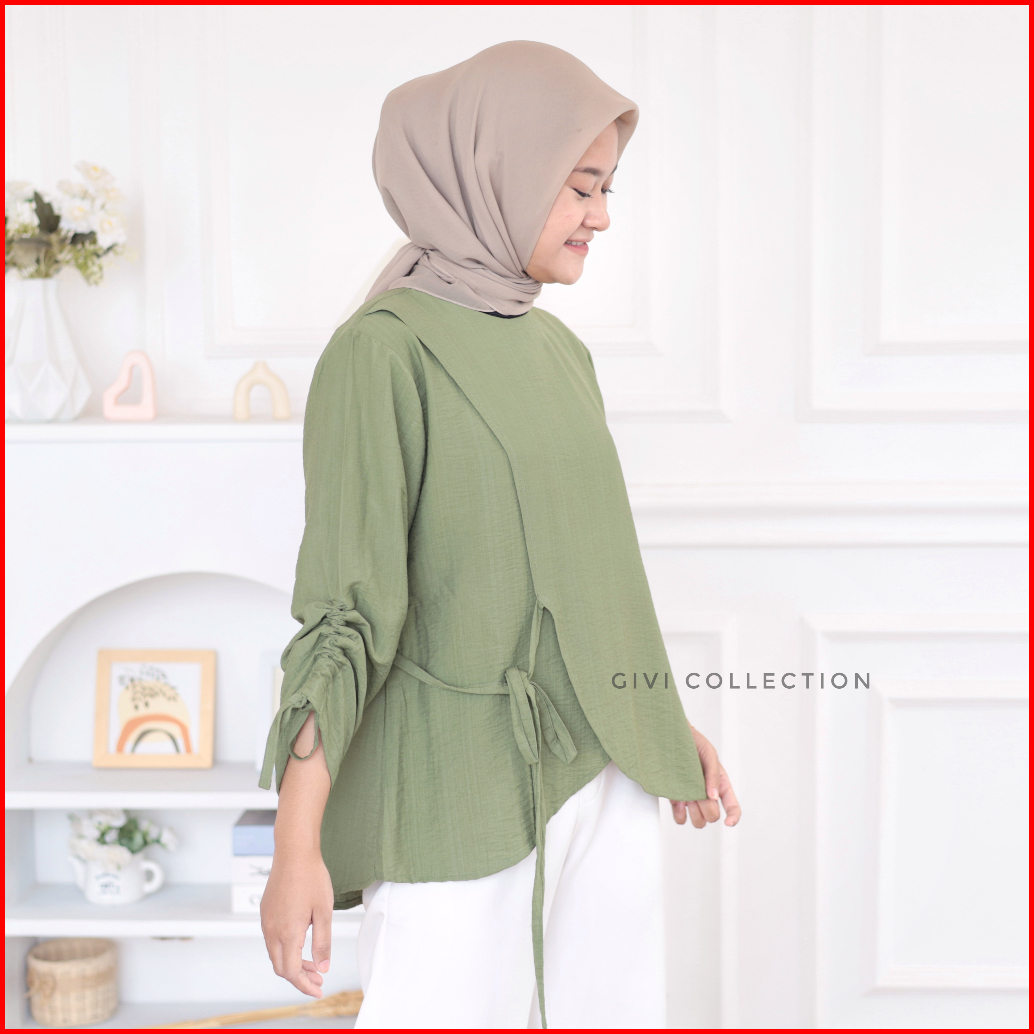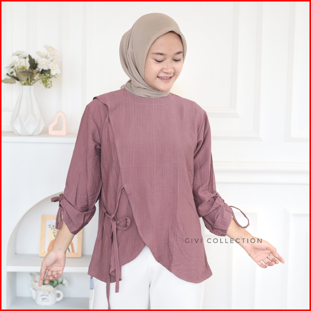 Nuna Blouse Atasan Wanita Polo Linen Baju Wanita