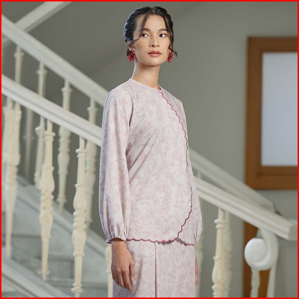 Hijabchic Ranum Pink Top - Baju Katun Lembut Motif Bunga Bordir Elegan
