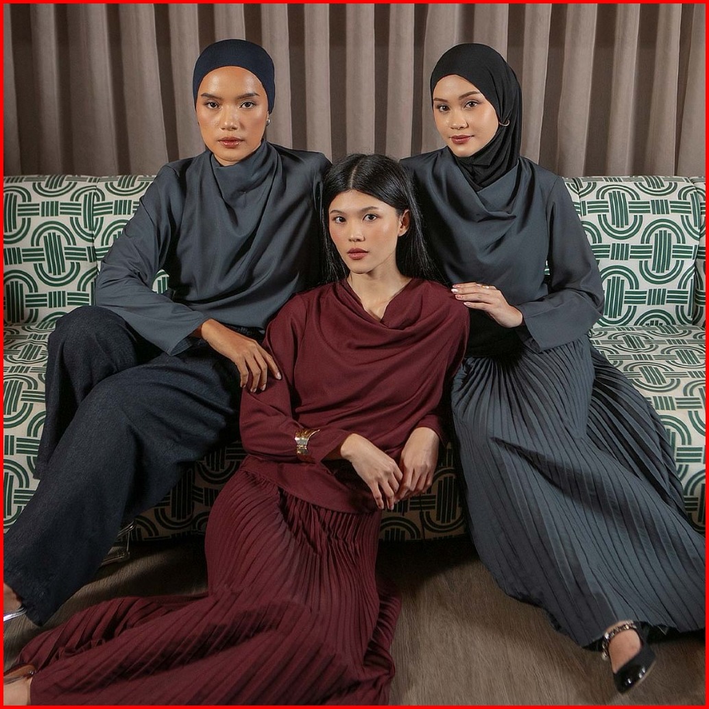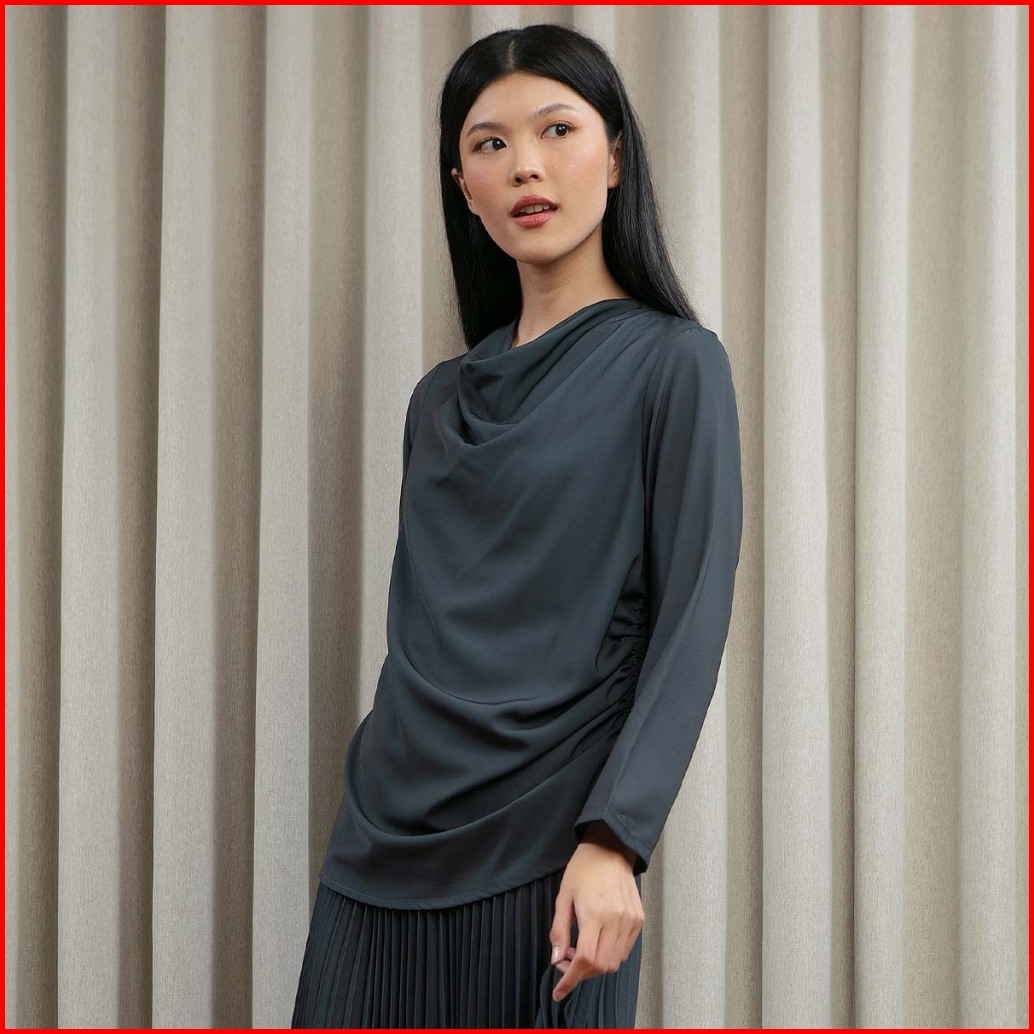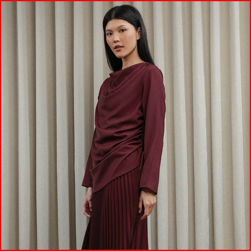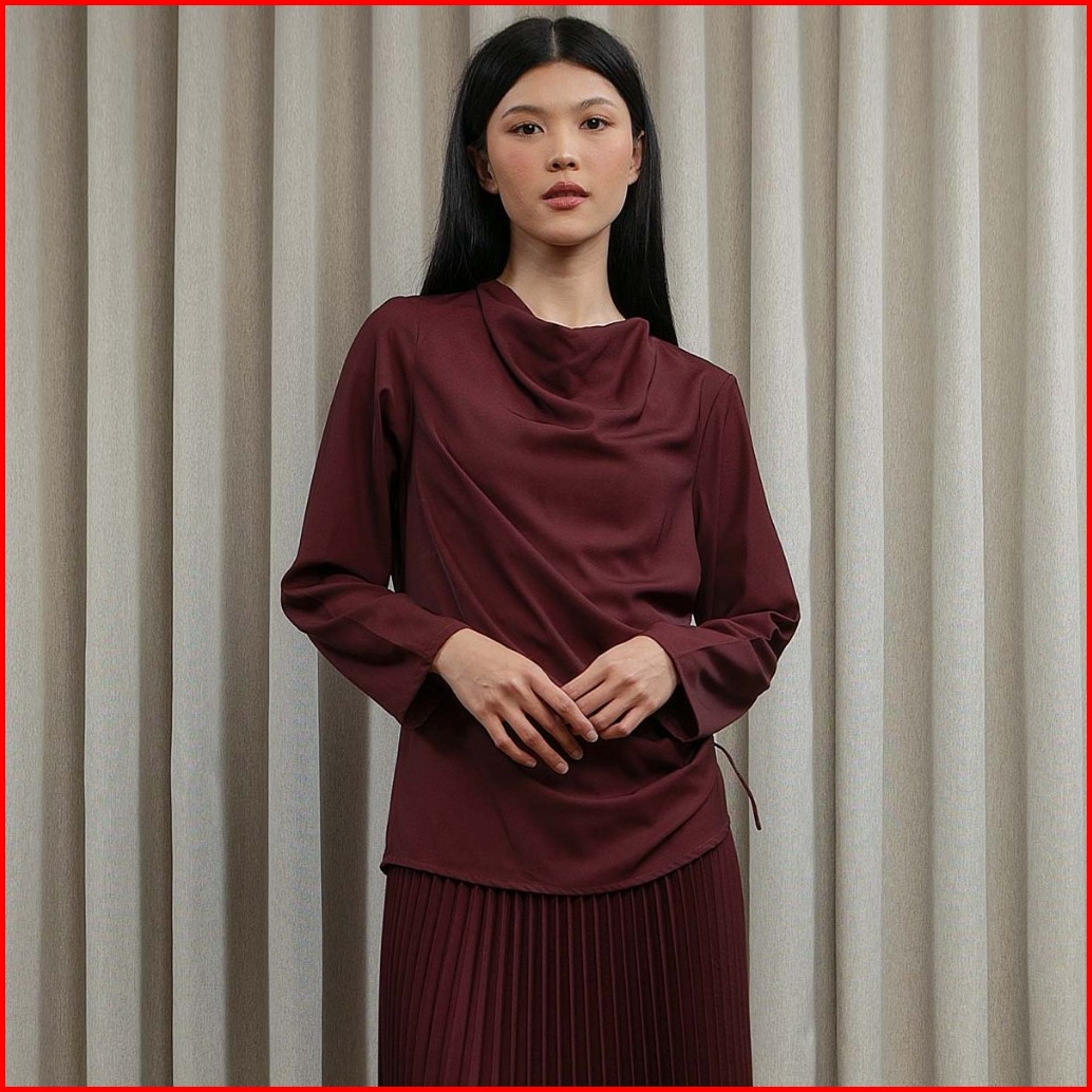 Hijabchic X Nabillasyal Rebecca Top - Baju Blouse Kerah Berlayer Elegan Tali Serut Slimfit