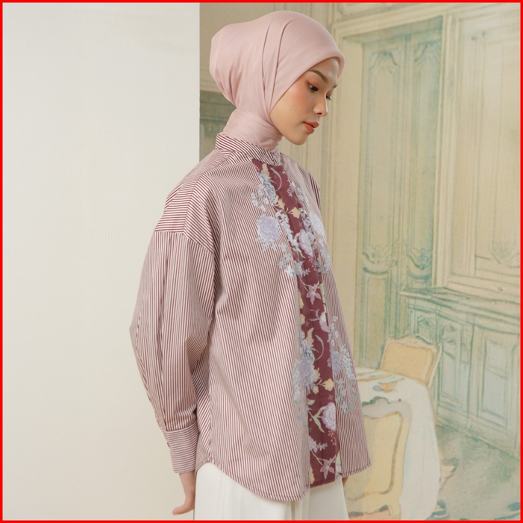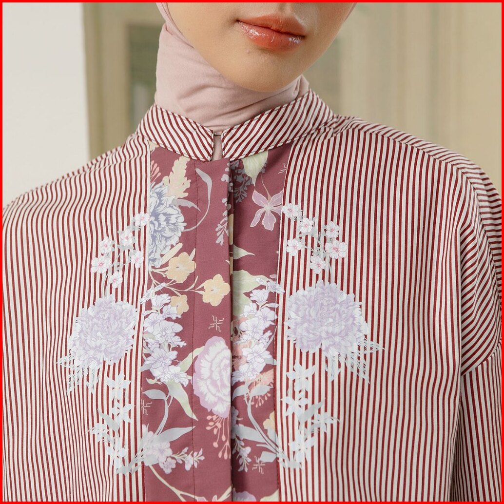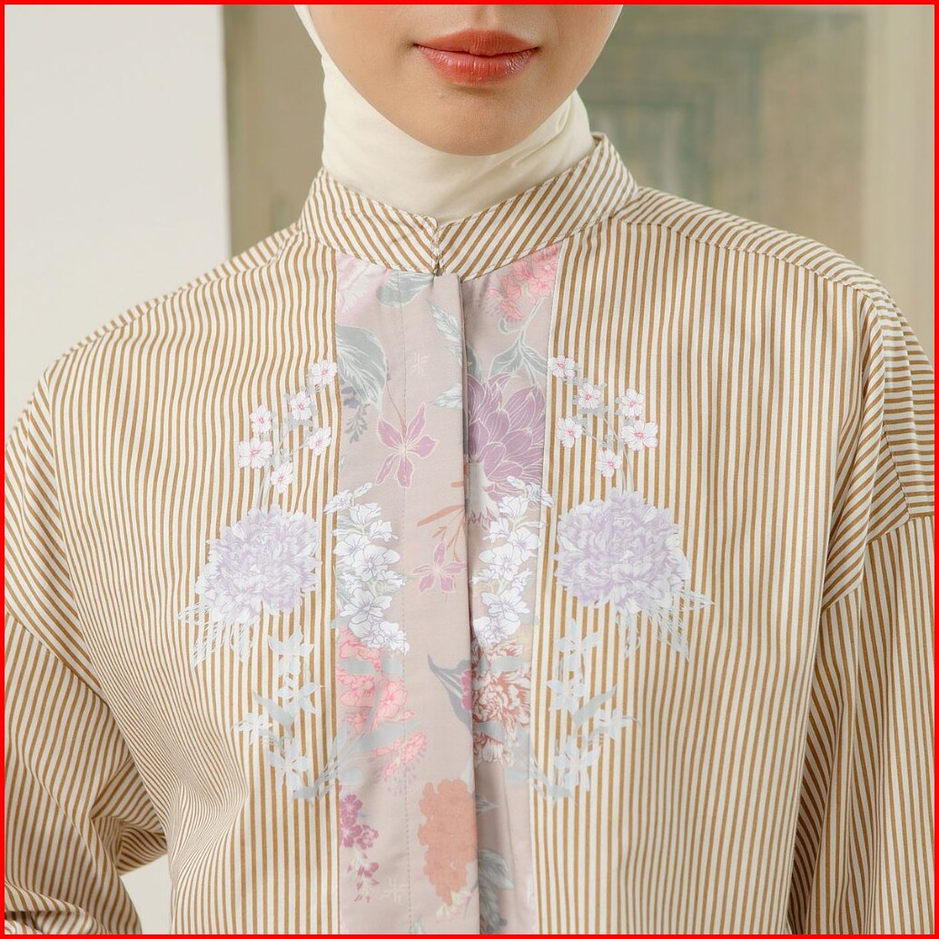 Hijabchic Florence Top - Kemeja Stripe Kombinasi Motif Bunga Sablon Premium Bahan Katun Lembut Mewah