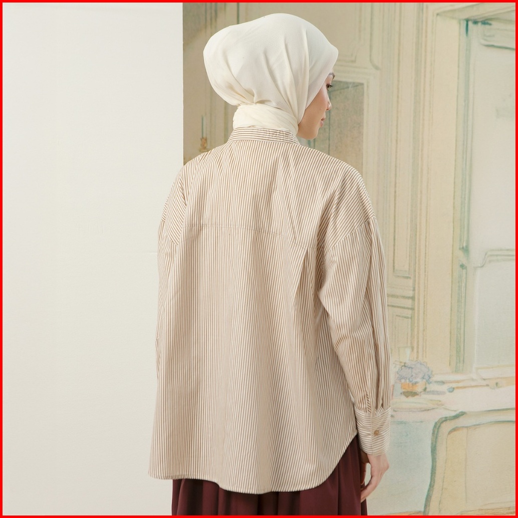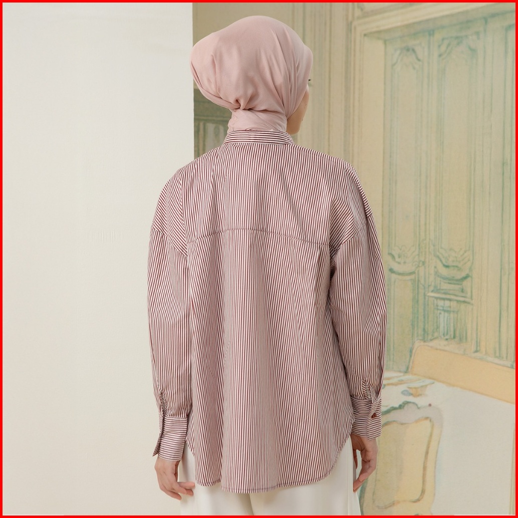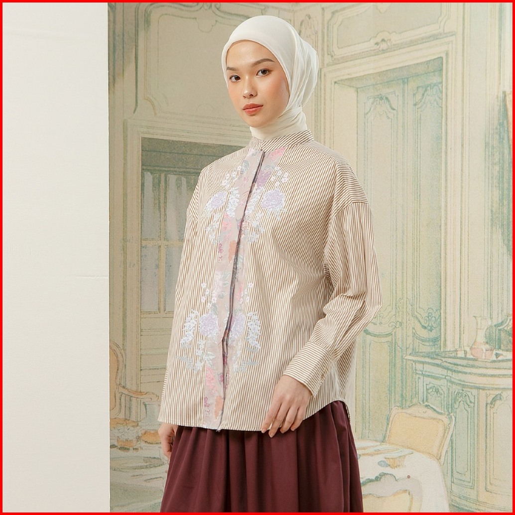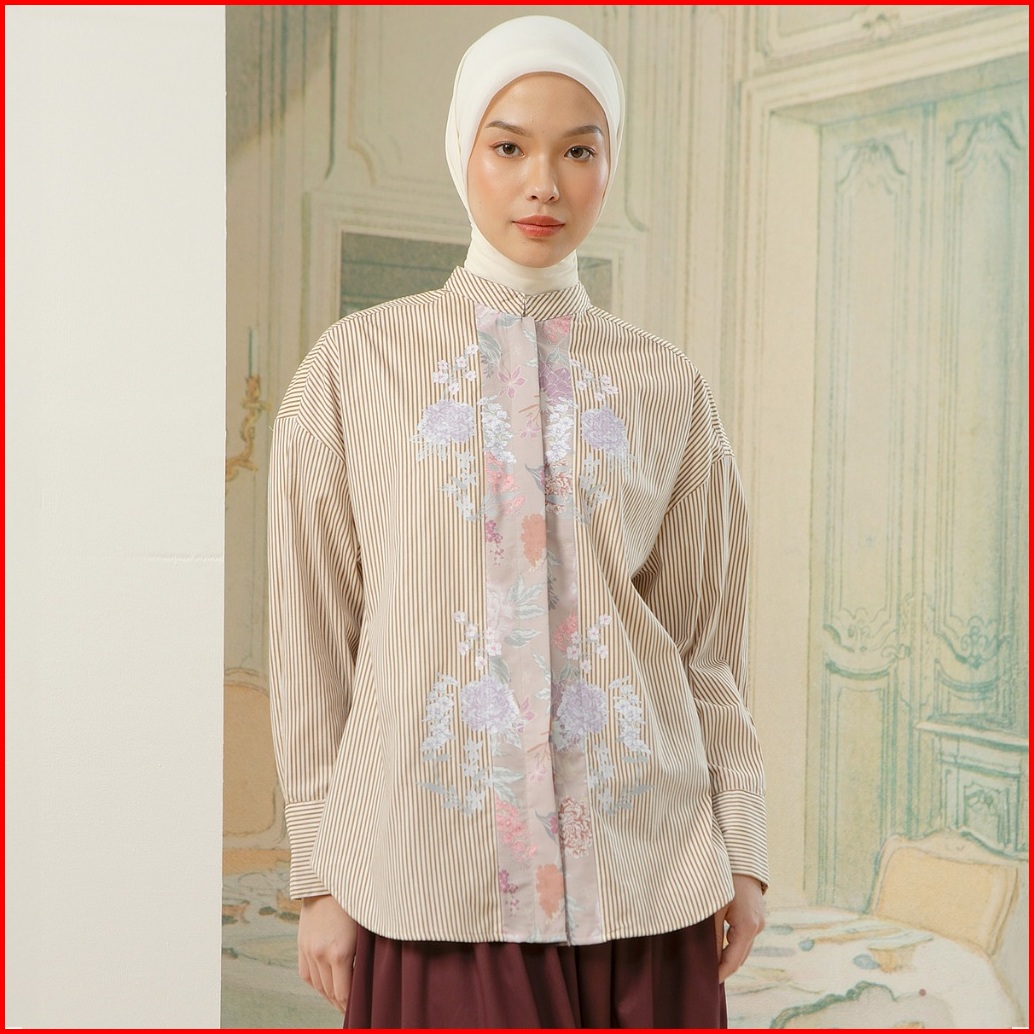 Hijabchic Florence Top - Kemeja Stripe Kombinasi Motif Bunga Sablon Premium Bahan Katun Lembut Mewah