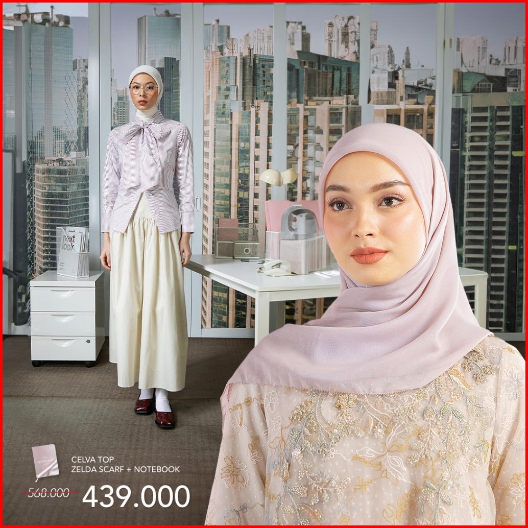 Bundling Hemat Hijabchic Celva Top Dan Zelda Scarf - Setelan Baju Kerudung