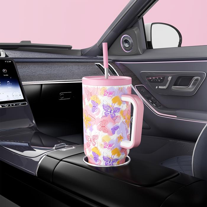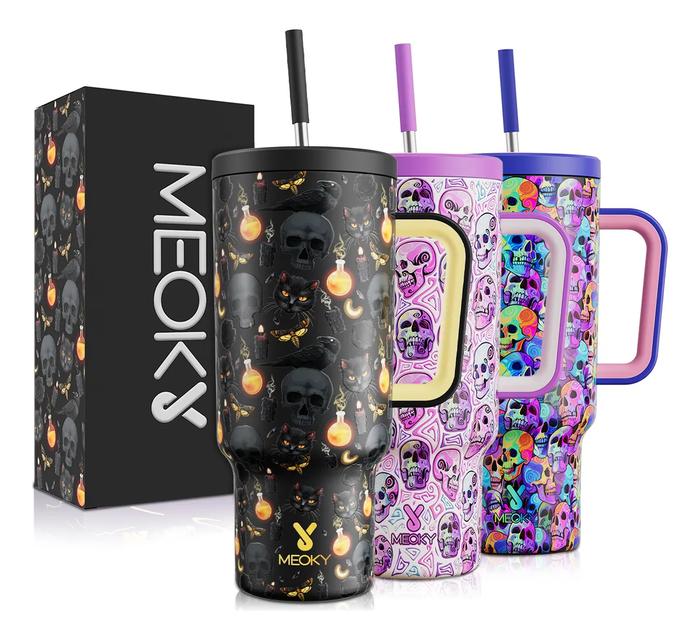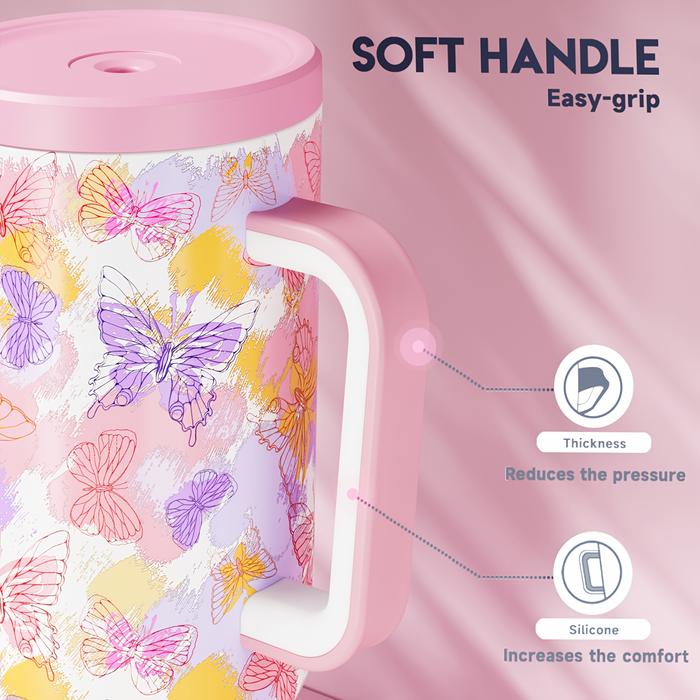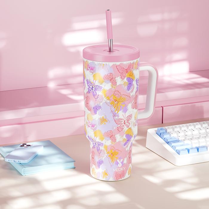 [BEST OFFER] MEOKY GELAS MINUM DENGAN PEGANGAN 1100 ML, TUTUP ANTI-BOCOR & SEDOTAN, CANGKIR KOPI STAINLESS STEEL 304, CO