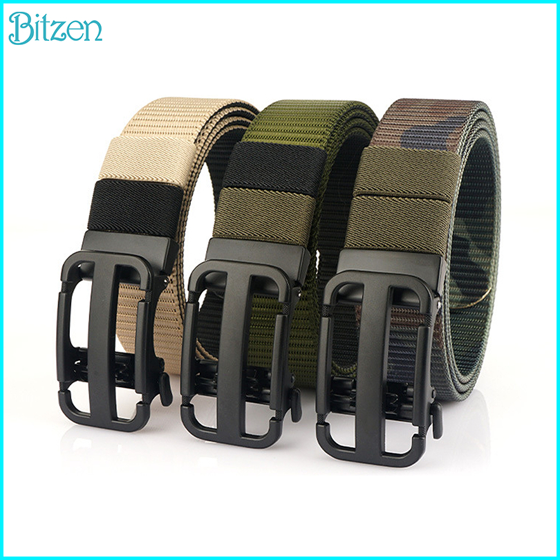 Bitzen Ikat Pinggang Pria Ganda Warna Gesper Pria Berkualitas Nylon Sabuk Pinggang Pria