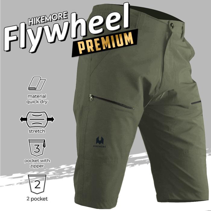 Hikemore Celana Pendek Sepeda Non Padding Celana Sport Outdoor Pria Wanita Flywheel Premium Quick Dry - Hm Black, L